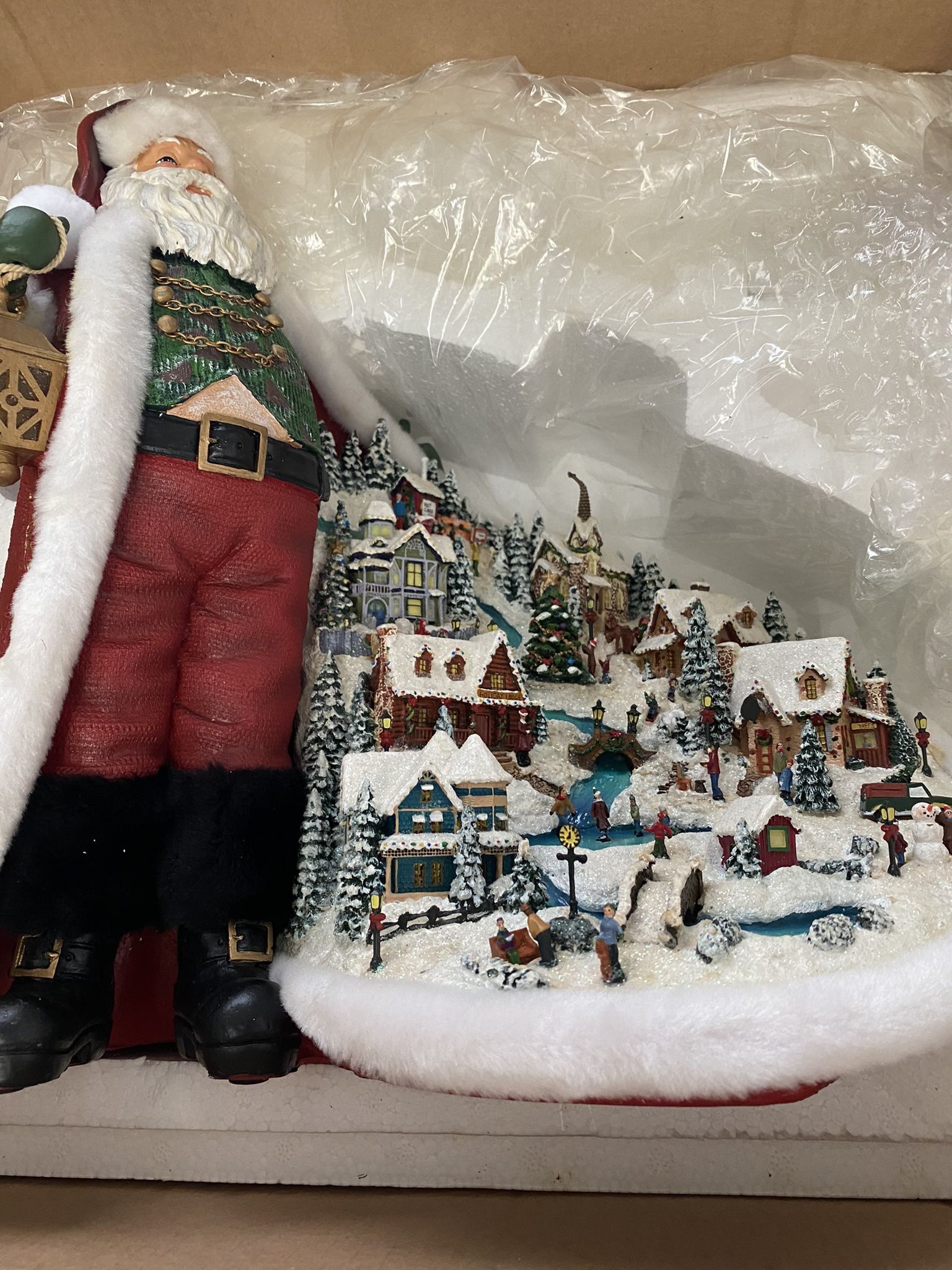 Thomas Kinkade Illuminated "Santa's Holiday Village" Figurine is an exquisite piece of Thomas Kinkade Collections it was my mothers and it's never been displayed or out of the box. It has the Certificate of Authenticity still in the box. This beauty would make a wonderful and special gift for that special someone. It measures approximately 12"H x 10" W.
