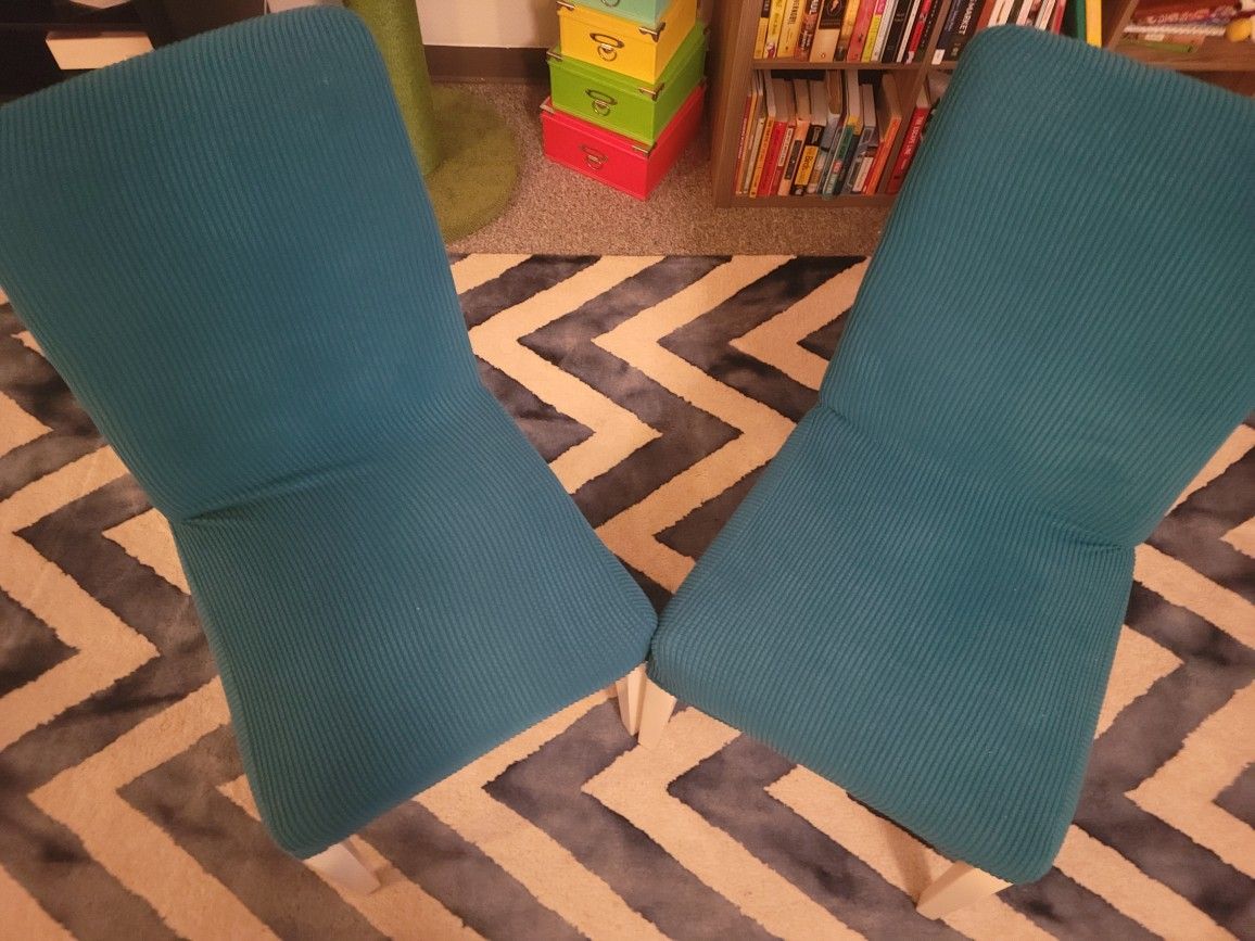 Two ikea chairs in good condition with high backs and new seat covers. Very comfortable and sturdy, some wear and tear visible, see pictures. Seat covers can be removed. These are not the original covers.