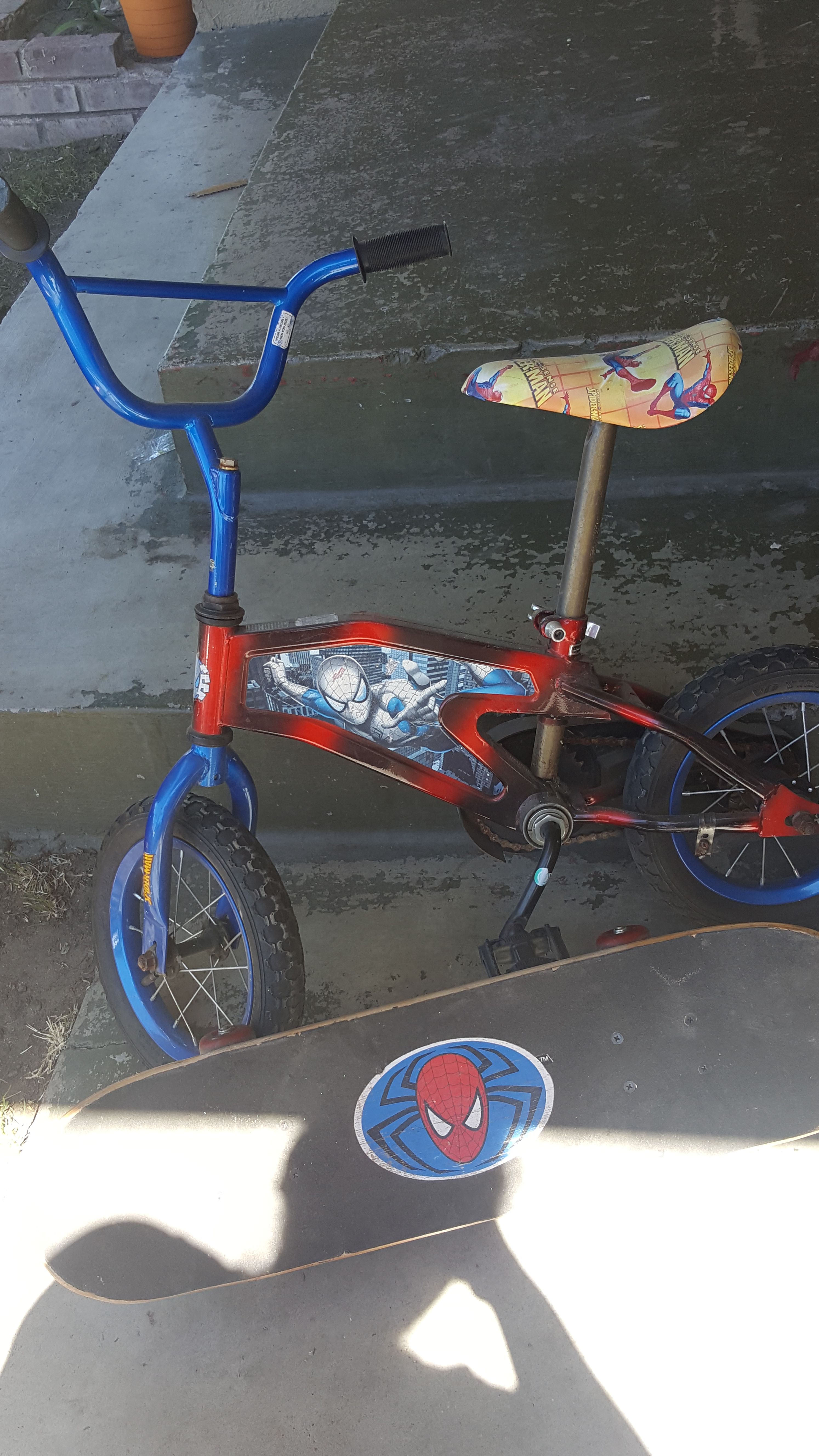 Spiderman kids bike and skate board