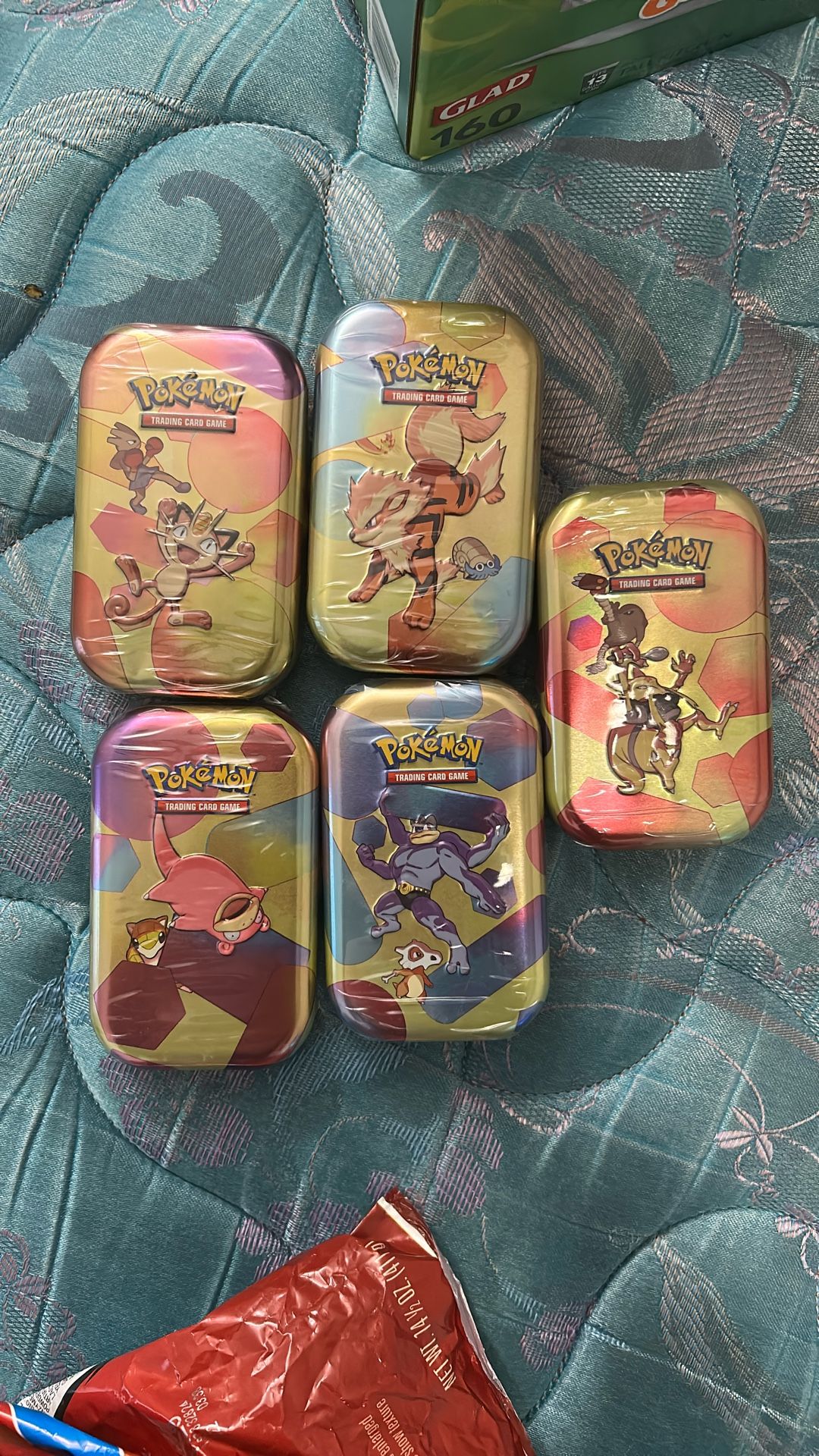 Unopened Pokémon trading card tins from the Scarlet and Violet 151 edition asking 60 for each tin
