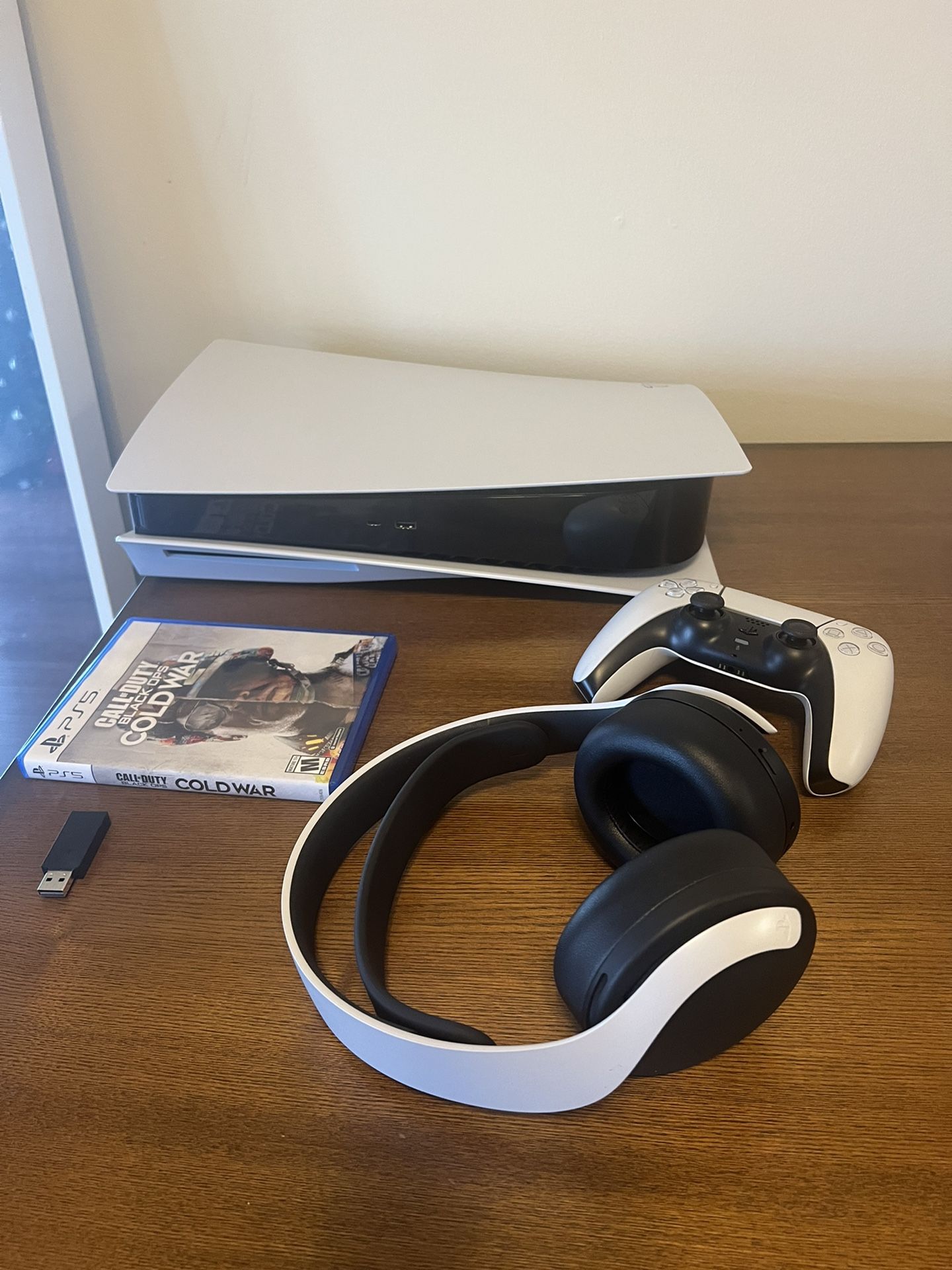 -PS5 Disc Version with Box Used a few times, bought brand new from Target - wireless controller -wireless PS5 headset -Call of Duty Thanks for looking