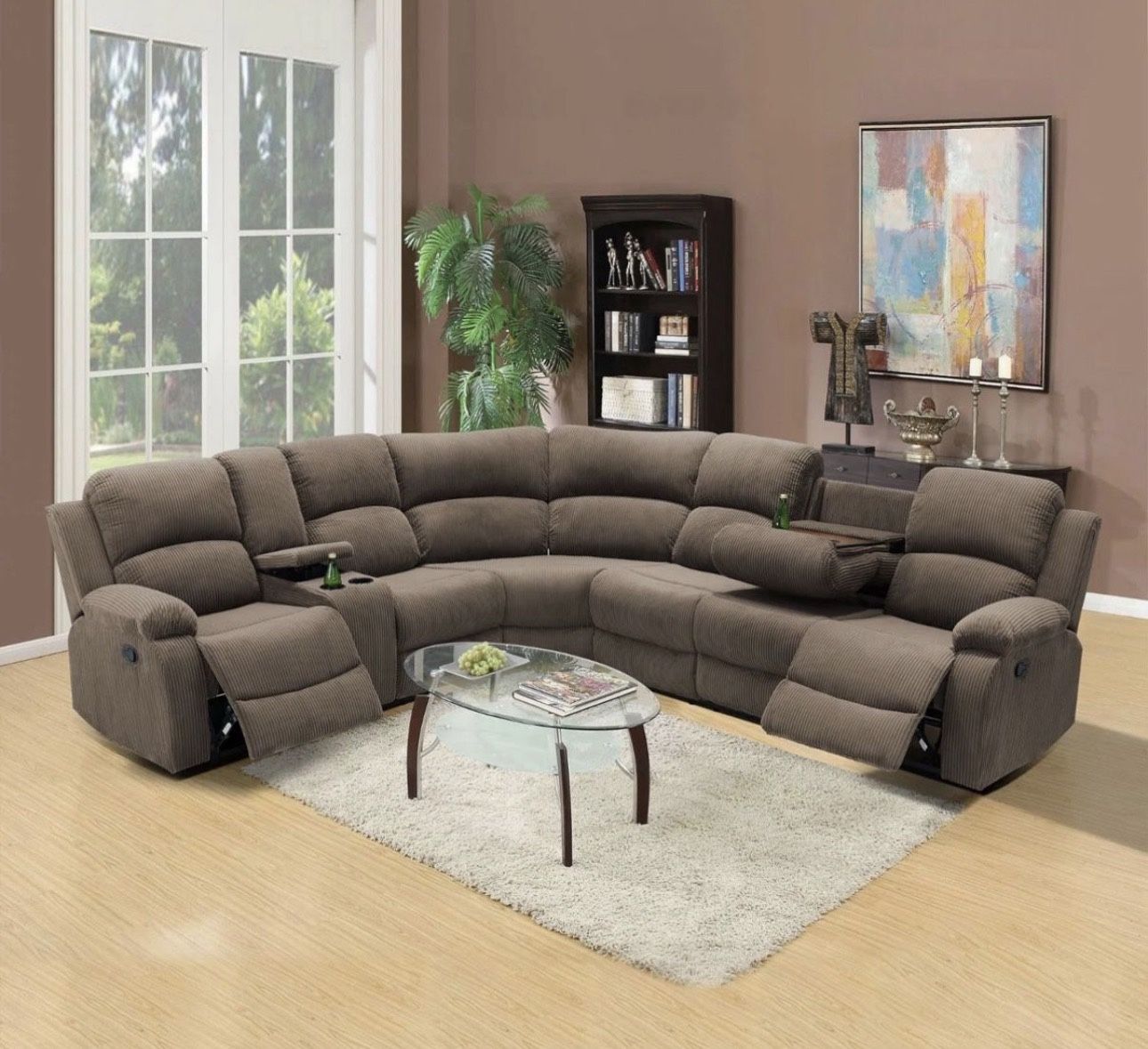 New Years Sale! Brown Microfiber Fully Reclining Sectional Couch