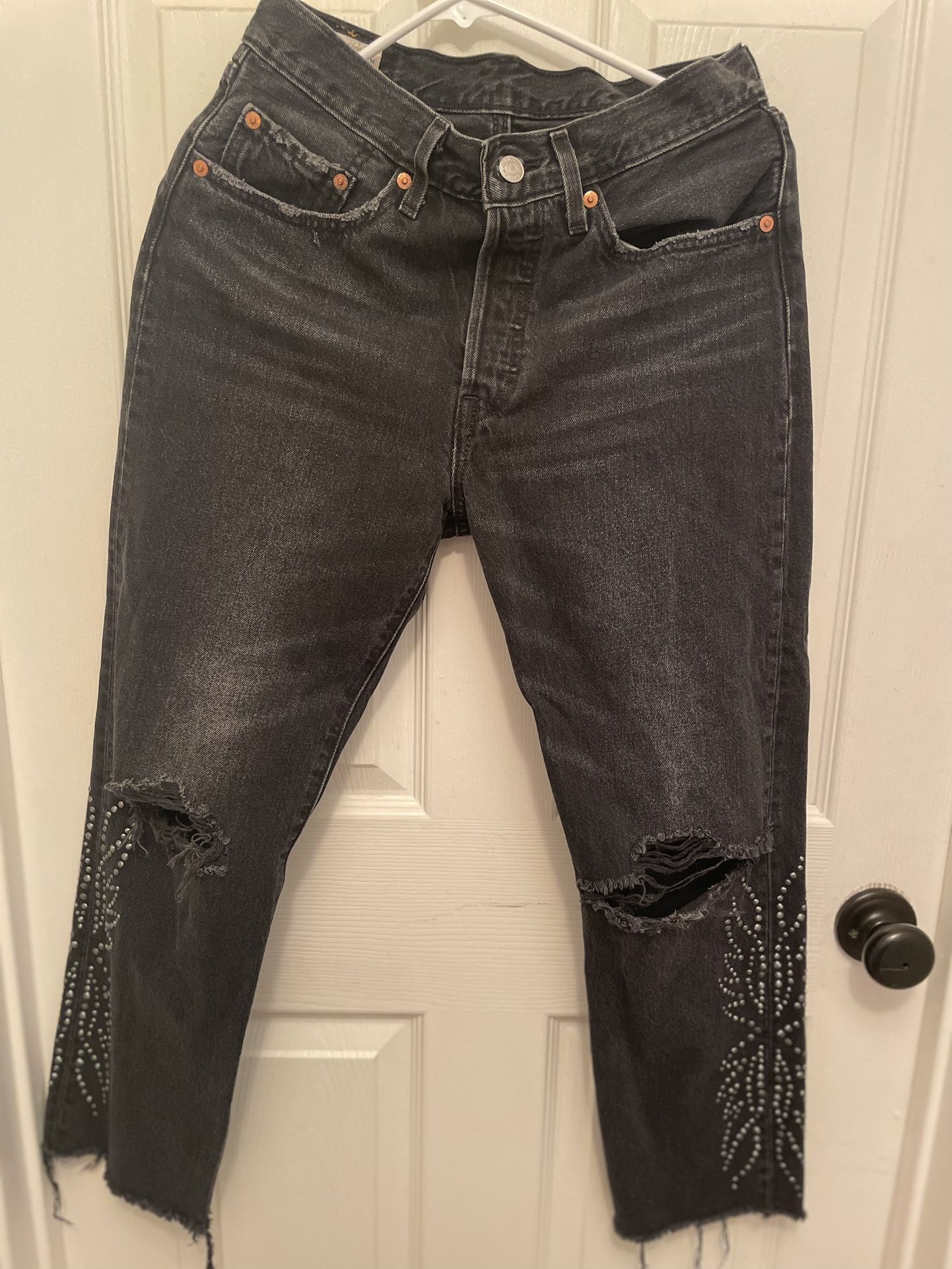 Selling these cute Levi's Premium 501 Black Jeans, size 26 cropped, studded and Distressed. I take payment through cash only, sorry I don’t have any of the money apps. Local pick up in San José, CA. Available on the weekends and evenings during the week.