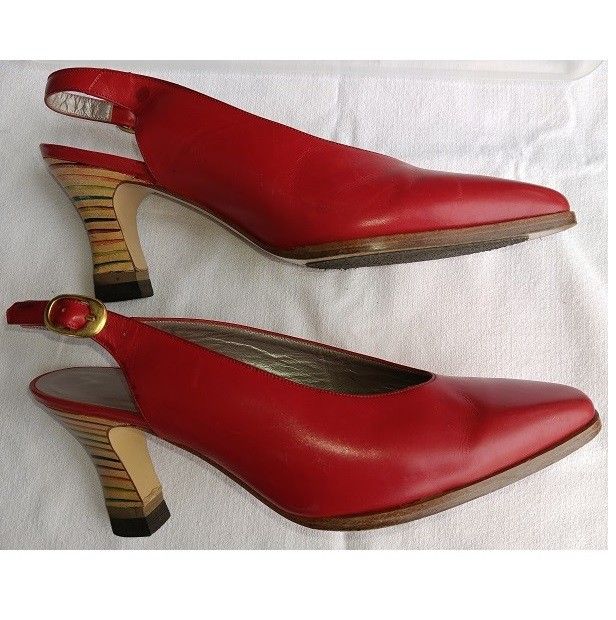 Size: 5-1/2" Red Leather Sling back Strap Pumps for women Adjustable slingback strap with buckle closure