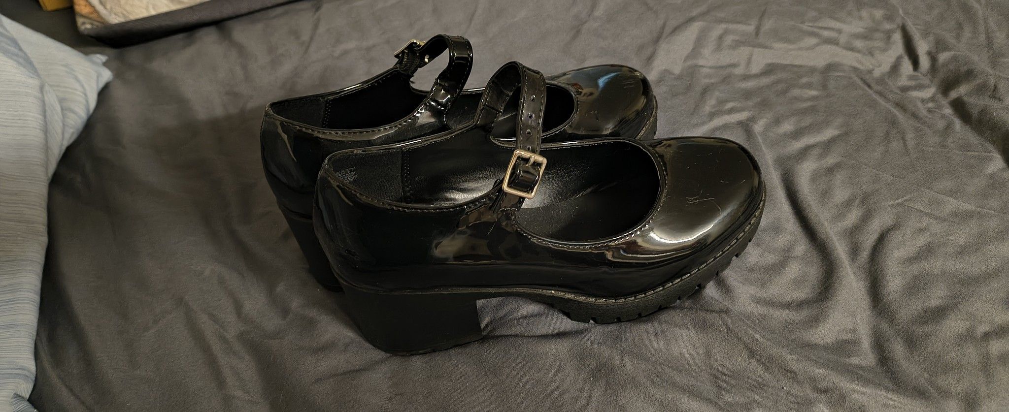 These are really cute shiny black Soda "Lolita" shoes. I got them cuz they're cute but unfortunately the shoes don't really go with me lol they're size 7.5. they're like new! Probably wore them once or twice. The sole is practically new! Asking $10 Exact Cash please! Pick up in Whittier Please check out my other listings!!