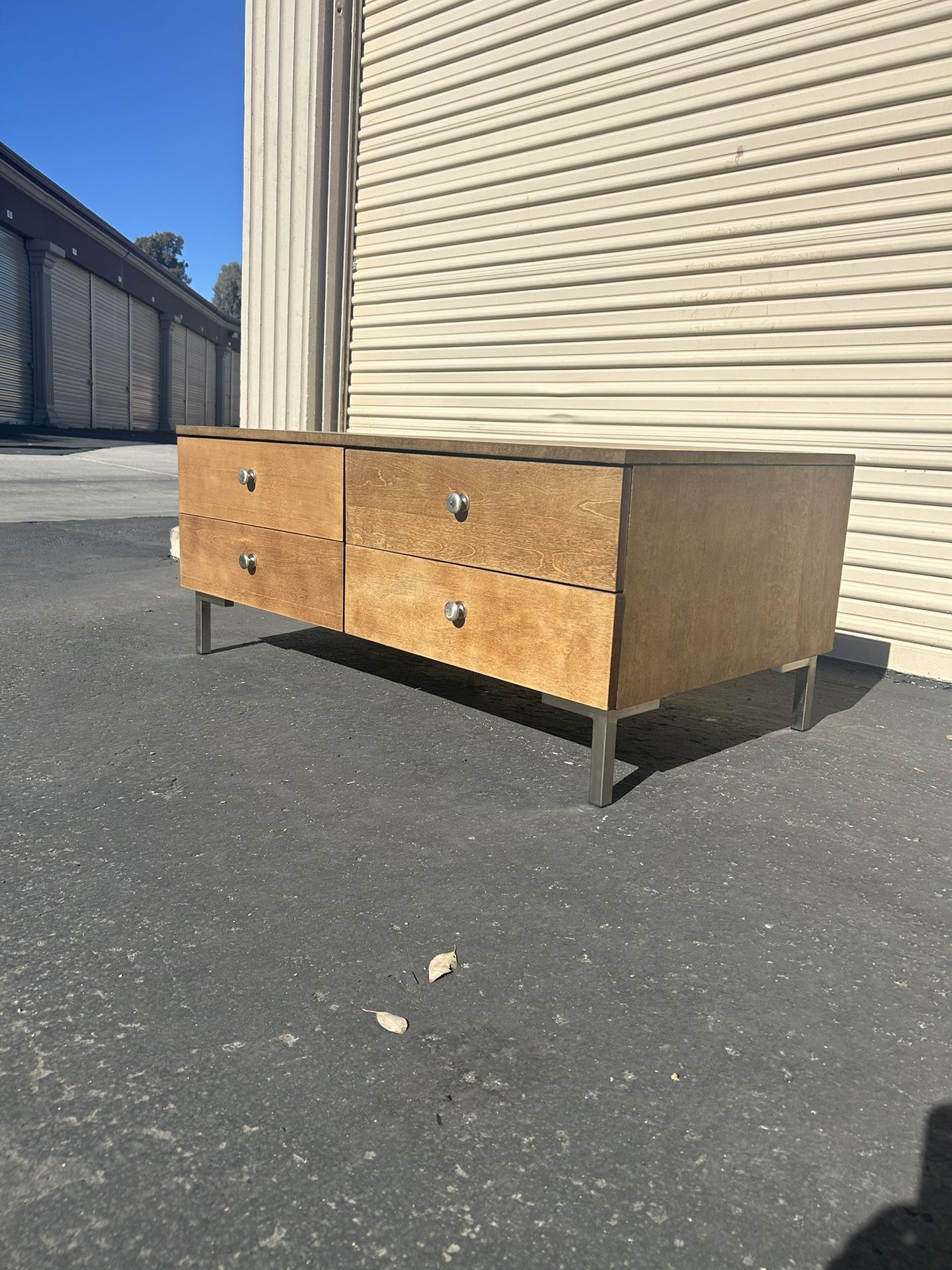 Mid century modern style coffee table, four drawers dimensions are 20 tall , 48 long , 26 deep.