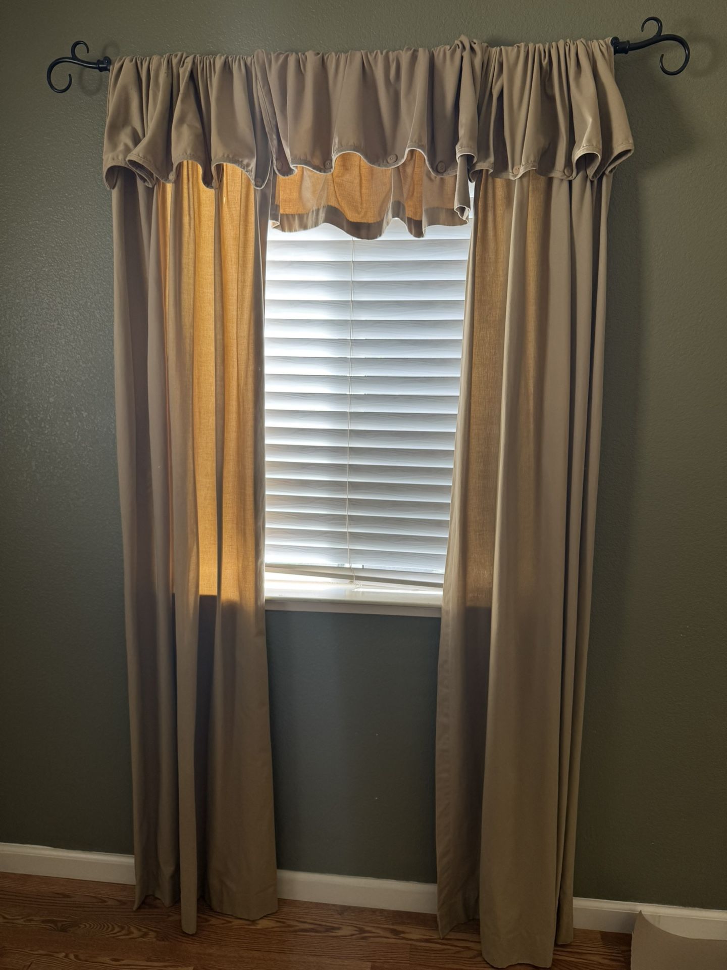 100% cotton curtains Sliding door set Two sets of full window curtains And entire set of bay window curtains No holes in great condition