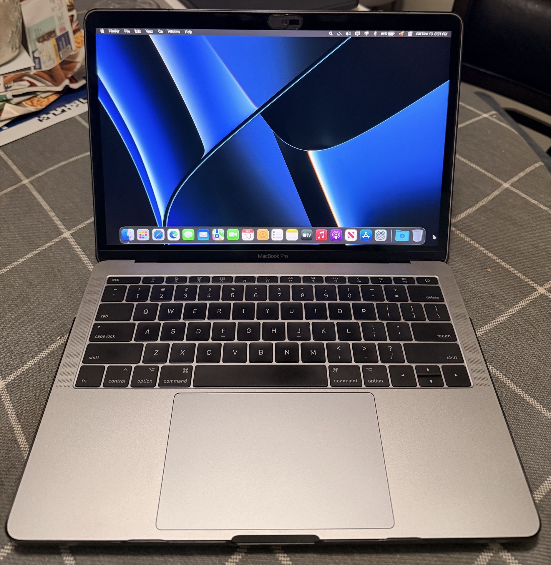Offers offers 1. Macbook Pro 2. Year 2017 3. 13 inch 4. 8gb Lpddr3 ram 5. 128GB Apple SSD 6. Good Battery Health 7. Original 61W Charger & usb-c 8. Brand New Dark Case 9. Brand new Keyboard Cover