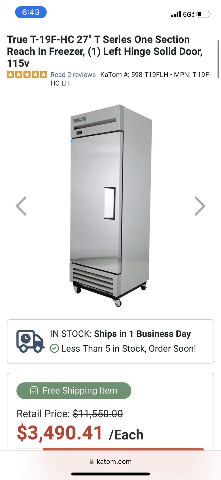 Commerical freezer for sale used in working condition must pick up with a truck and people to help move it from storage