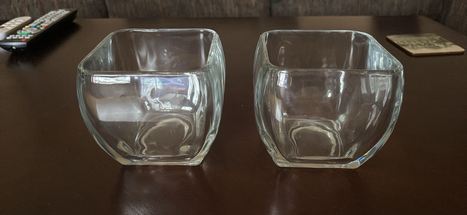 Libbey Heavy Clear Rounded Square Shape Flower Glass Vases