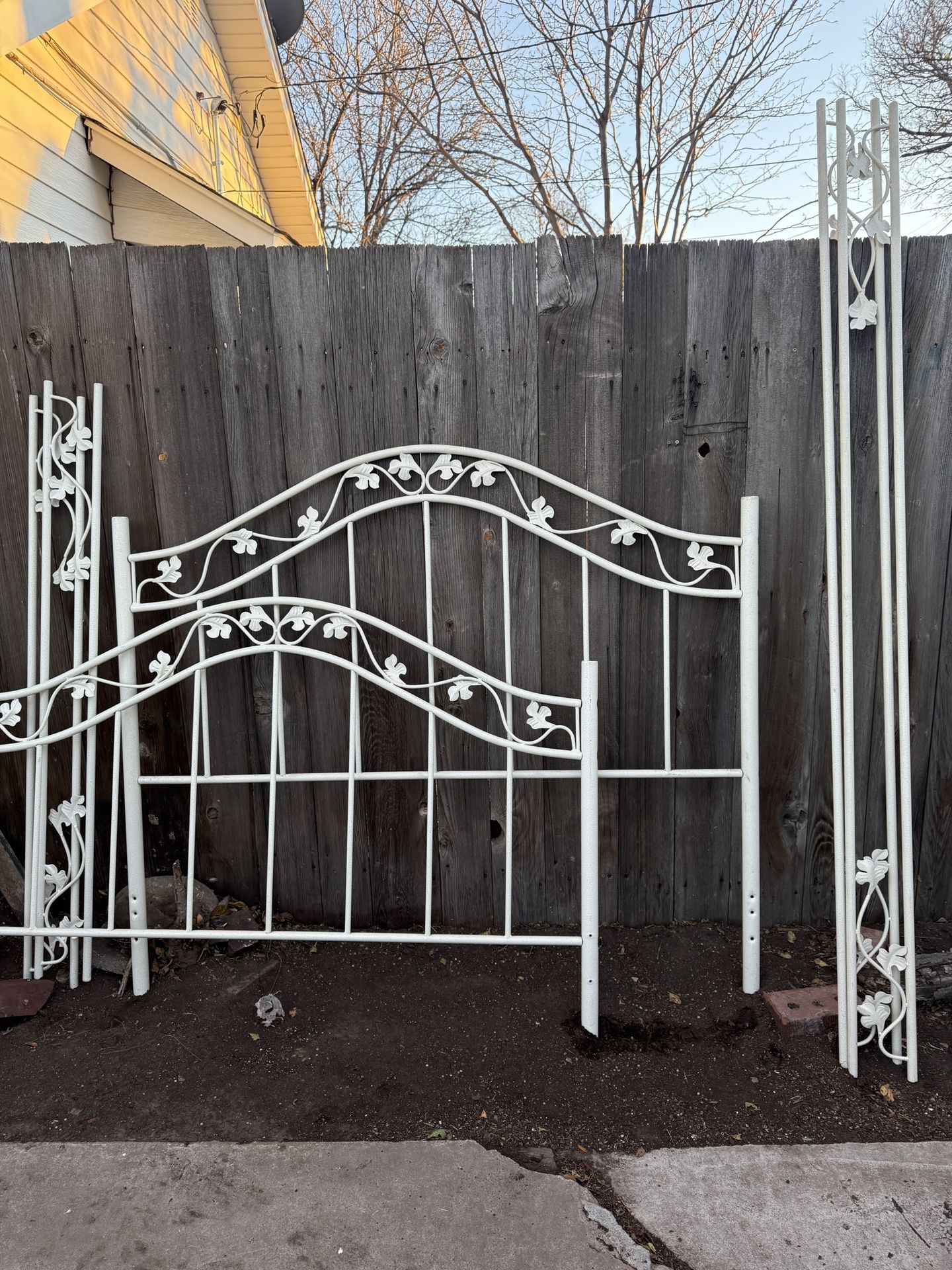 Metal, white bed frame. Sturdy but delicate at the same