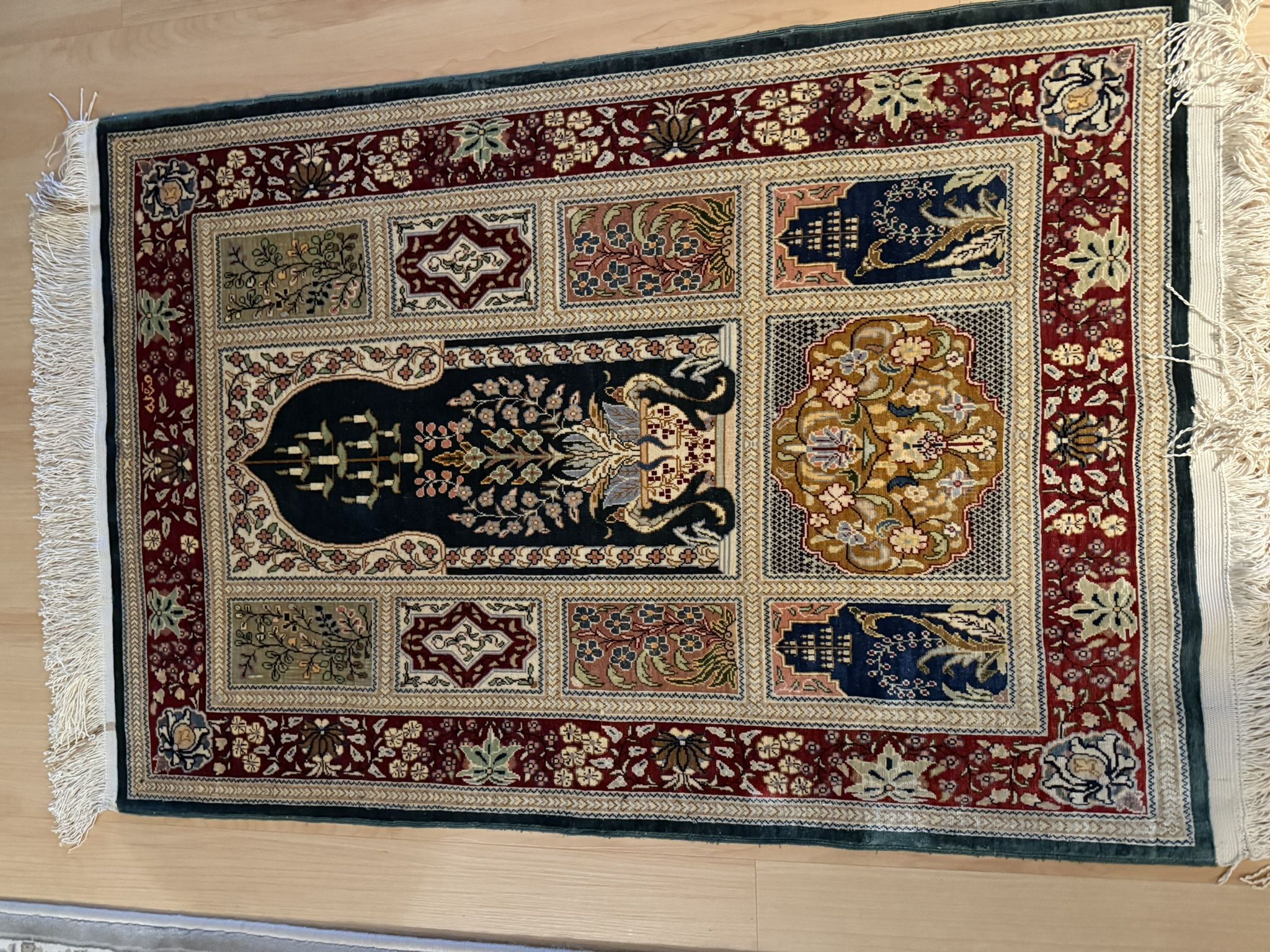 100% Silk Hand Knotted Hereke Prayer Rug