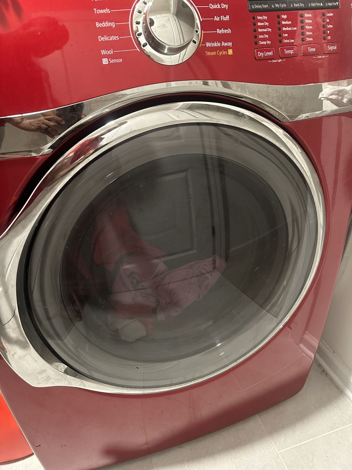 Washing machine and dryer, the washing machine is white and the Dryer is red, the washing machine has a issue but it does work I believe it need a control board. The Dryer is good no issues