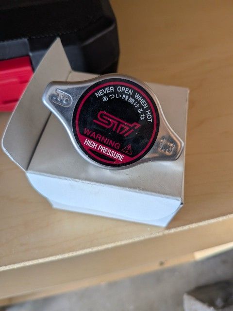 Hello, I'm selling my STI branded radiator cap and I believe it should fit any modern Subaru model Please let me know if you're interested!