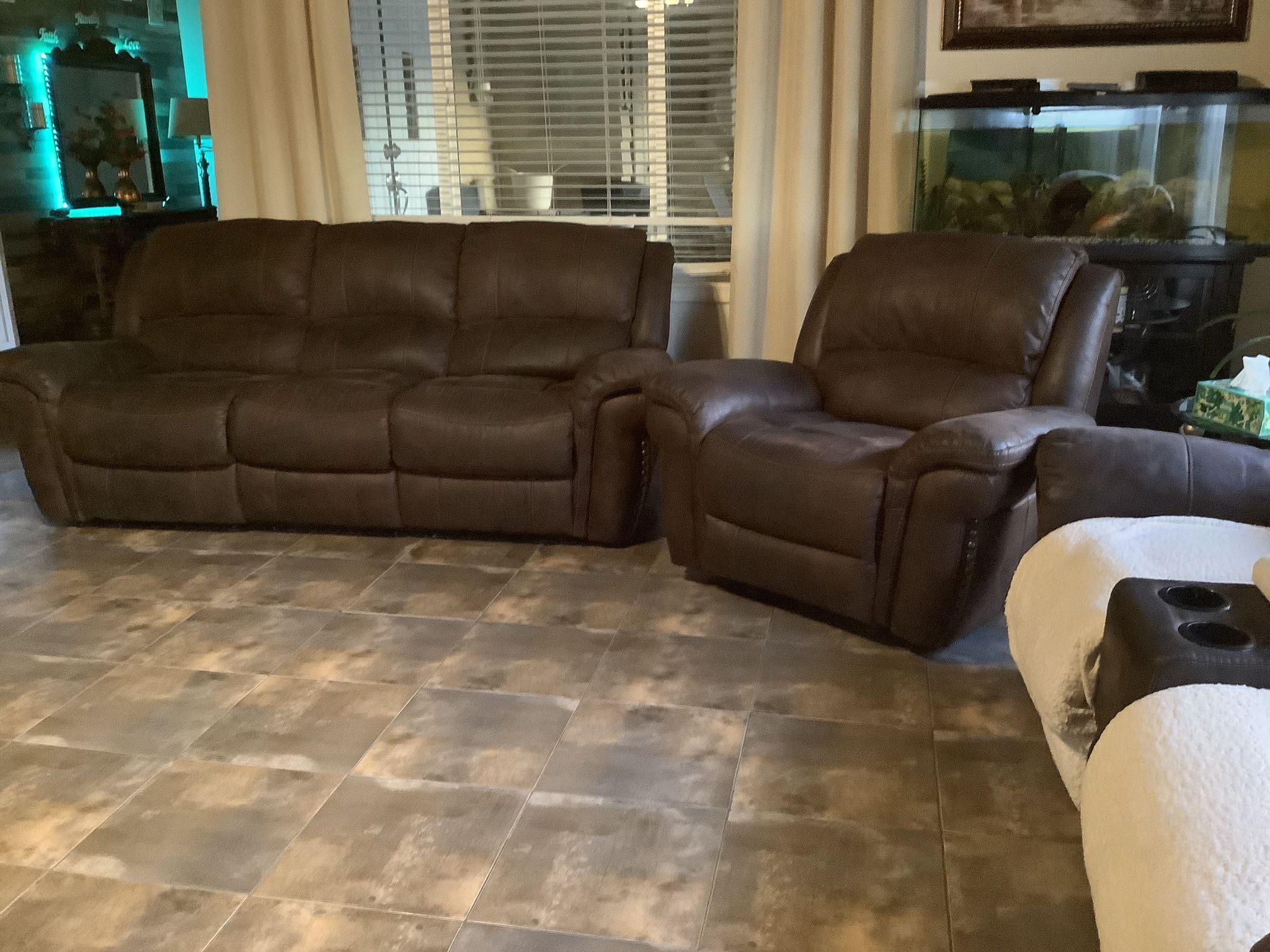 Sala de piel en buenas condiciones sólo porque estamos cambiando de muebles