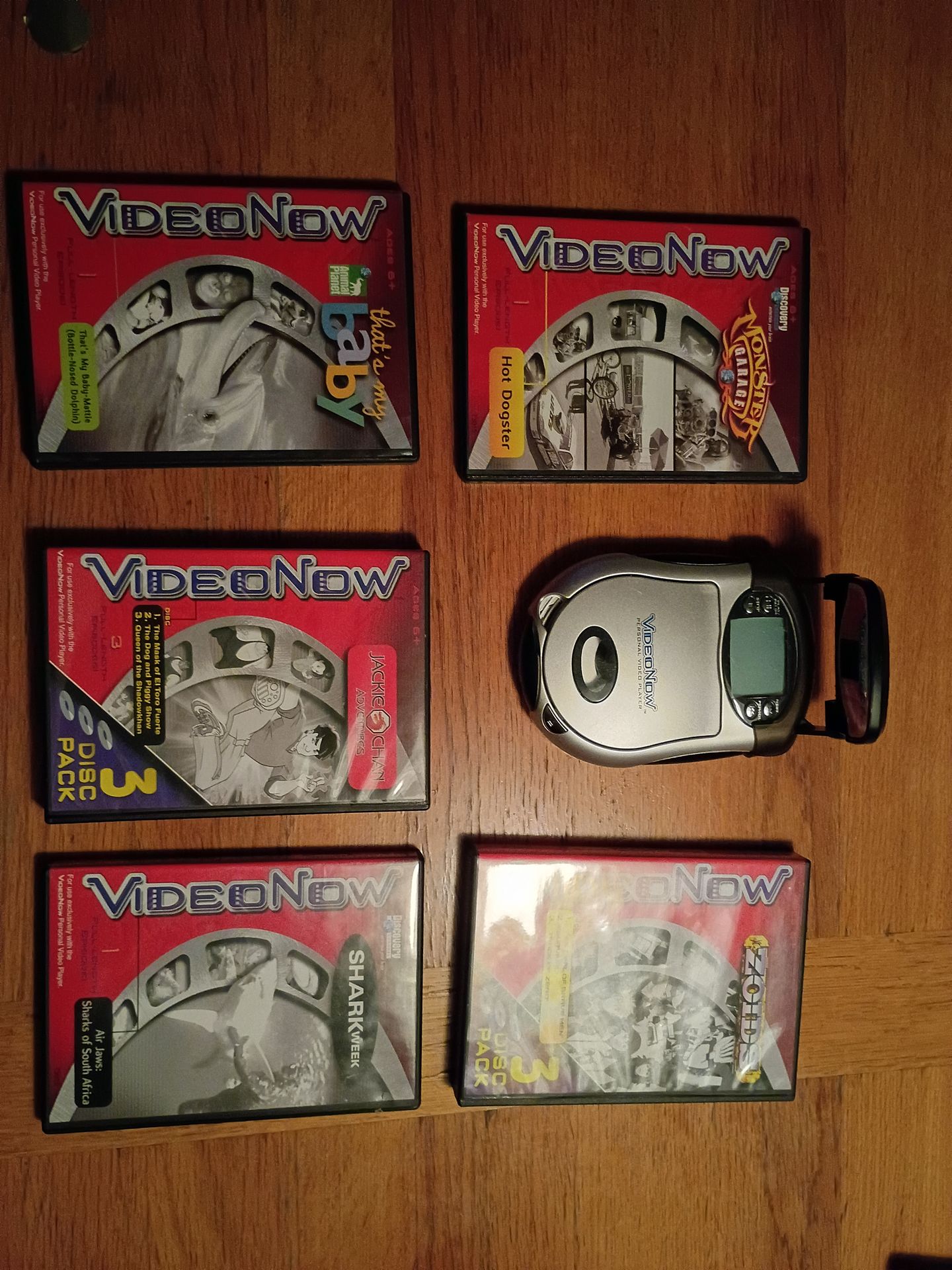 Complete VideoNow lot—original player with screen light (tested, works) + 13 factory sealed 3-disc PVD packs still in plastic:Rocket Power Auto 3000/Night ProwlerFear Factor (3x packs)That’s My Baby (orangutan + dolphin)Jimmy Neutron Safety First + Nick mix (Fairy Fairy Quite Contrarian, etc.)Jackie Chan Adventures (Mask of El Toro Fuerte)Fairly OddParents Boys in the BandBeyblade La Ecia BonitaZoids (Festival of Grave Men)Shark Week Air JawsMonster Garage Hot DogsterMint condition, never played. Perfect for 90s/00s nostalgia collectors. Cash/preferred pickup near Mundelein—no holds, first come. DM for more pics!