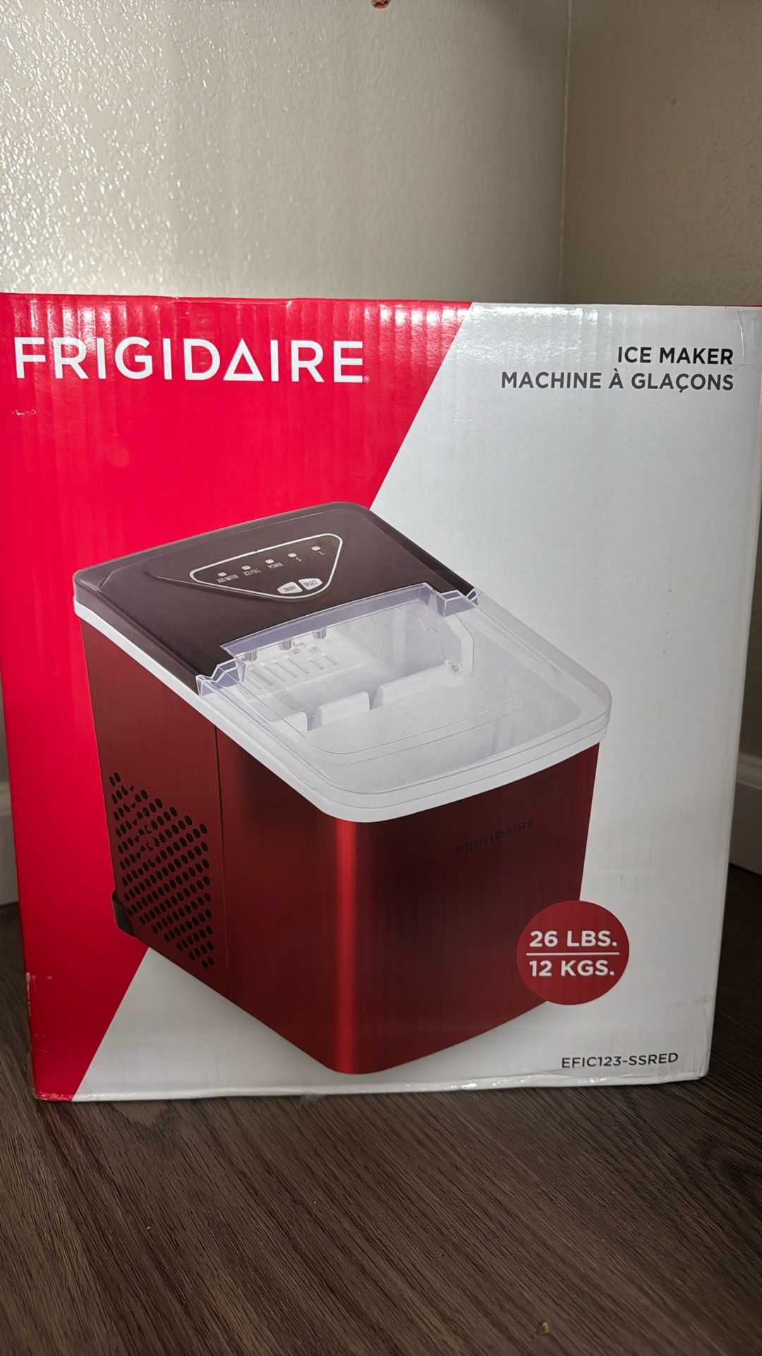 New In box Frigidaire Ice Machine Never Used Red 26 Lbs