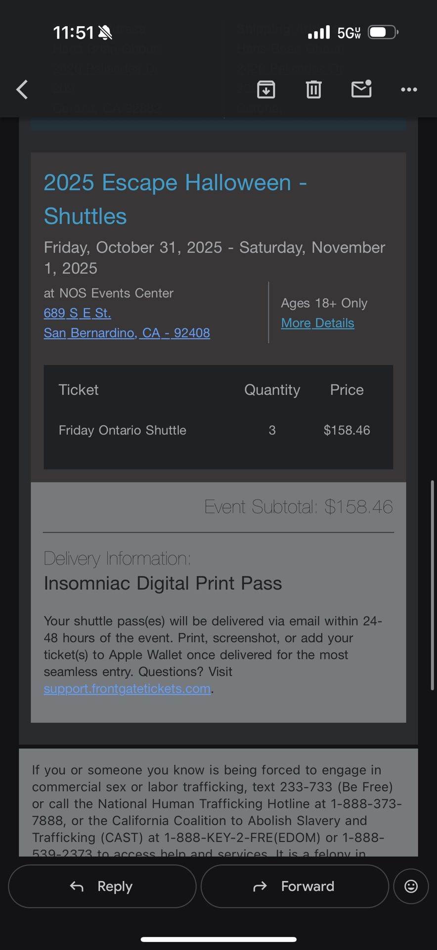 Selling 3 Shuttles For Escape Halloween Friday Only ( Ontario Airport ). Can transfer them electronically through email