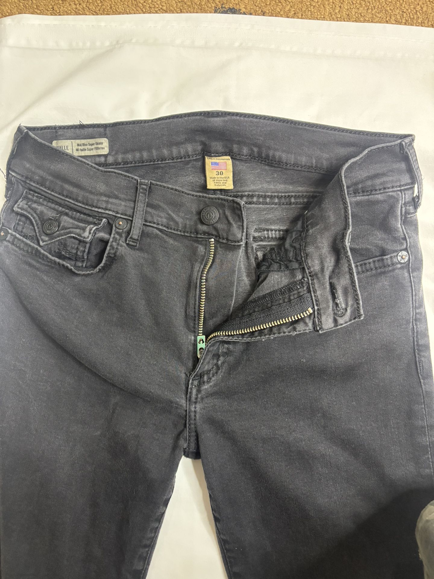 True Religion brand • Halle Super Skinny fit • Women’s size 30 • Black wash • Low-rise waist • Stretch denim • Classic 5-pocket design