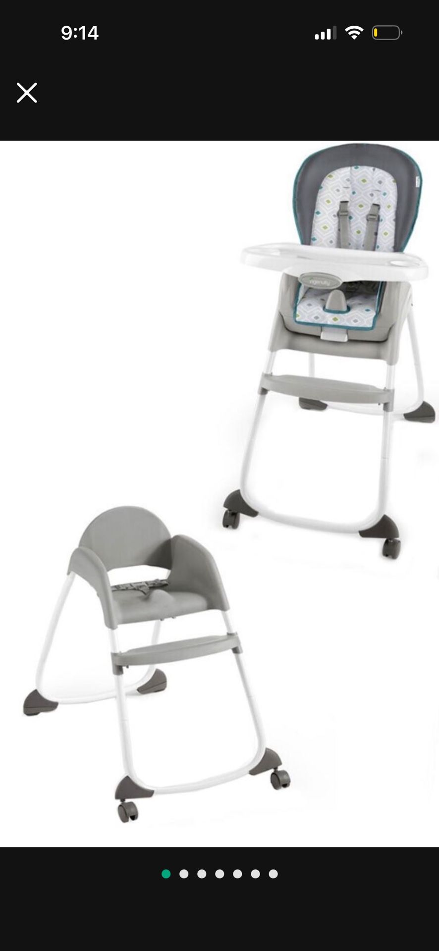 LOW PRICE MOVING- INGENUITY 3 IN 1 BABY TODLER HIGH CHAIR Well loved and perfectly functional Paid $250 + tax Comes a part for easy travel and storage Super high quality Asking $40 First come first serve Moving