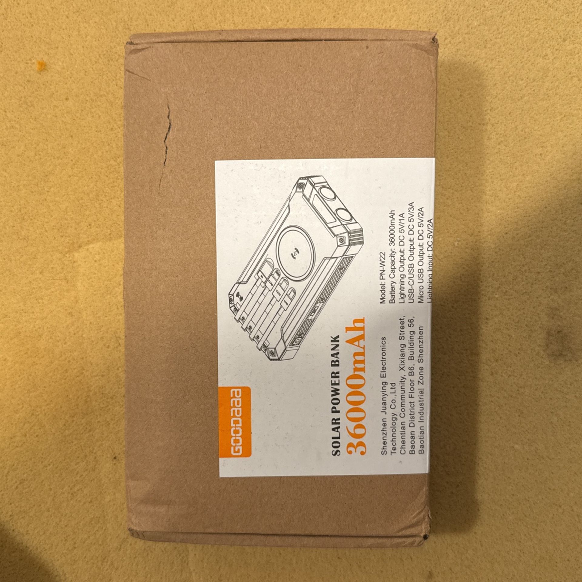 Solar power bank with 4 different charging cords. Comes with 4 different charging cords and lights on the top. Also is usb chargeable so when you need to charge the power bank a USB cord will work. Willing to haggle on price. Comes with everything included in photos.