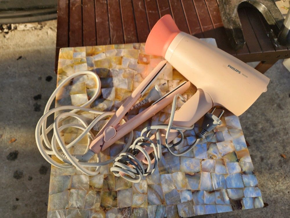 Cute pink Philips hair dryer and mini flat iron set. Perfect for travel, dorms, or everyday styling. π Features: β’ Philips 1600W hair dryer β’ Compact mini flat iron β’ Lightweight and easy to store β’ Great for travel or quick styling β οΈ Condition: Pre-owned with normal cosmetic wear (see photos). Tested and working. Perfect starter set or backup styling tools. π Pickup: Miami π¬ Message me if interested!