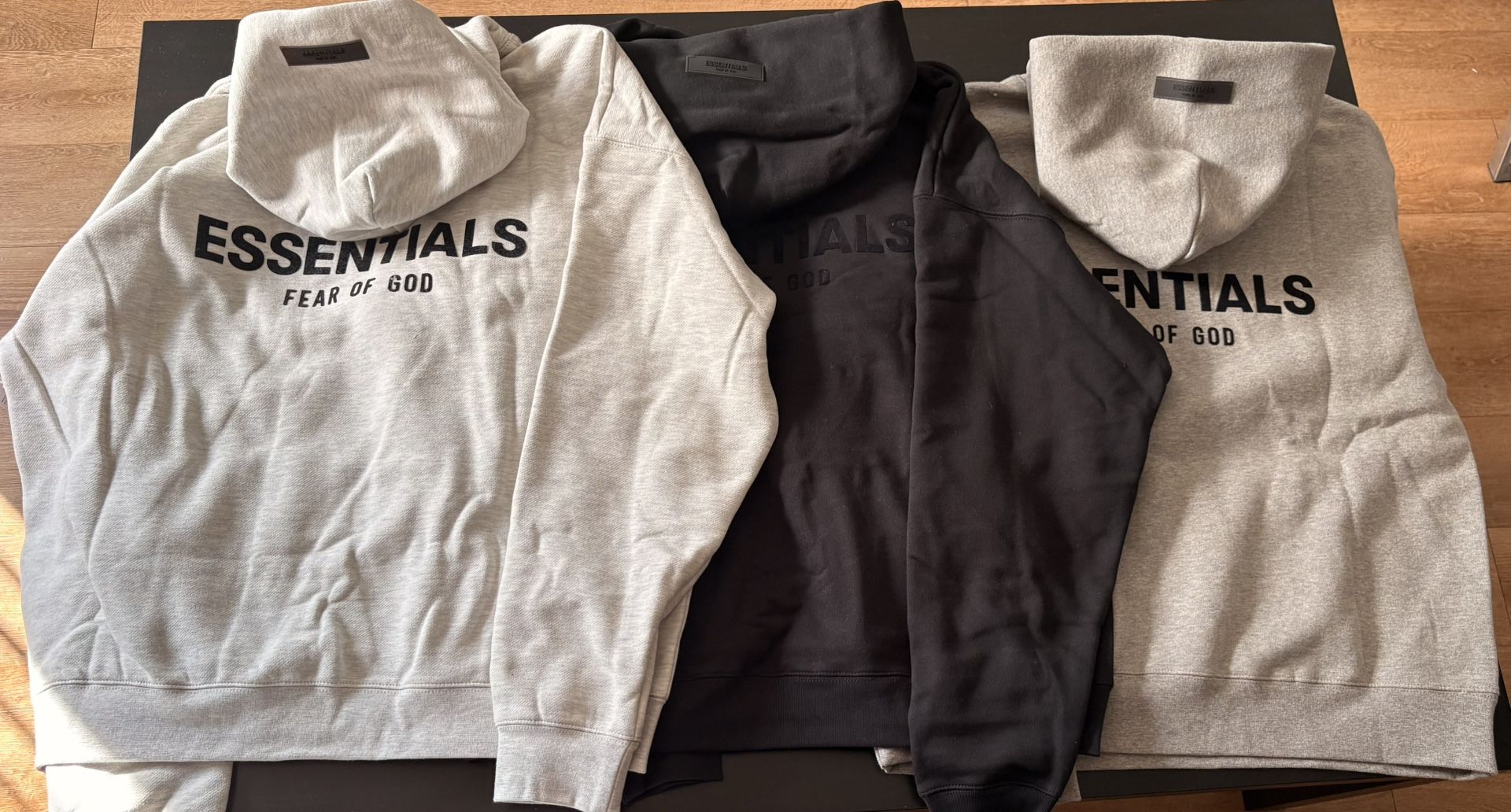 Brand new Essentials hoodies in various size M, L, XL, no minimum purchase required, but price does go down with the amount you buy.