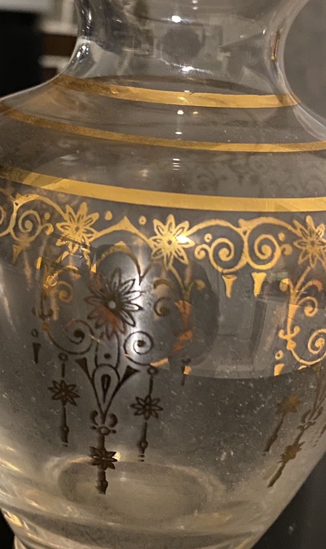 Beautiful Italian Vecchia Murano vase. Gold design. 5 inches tall.