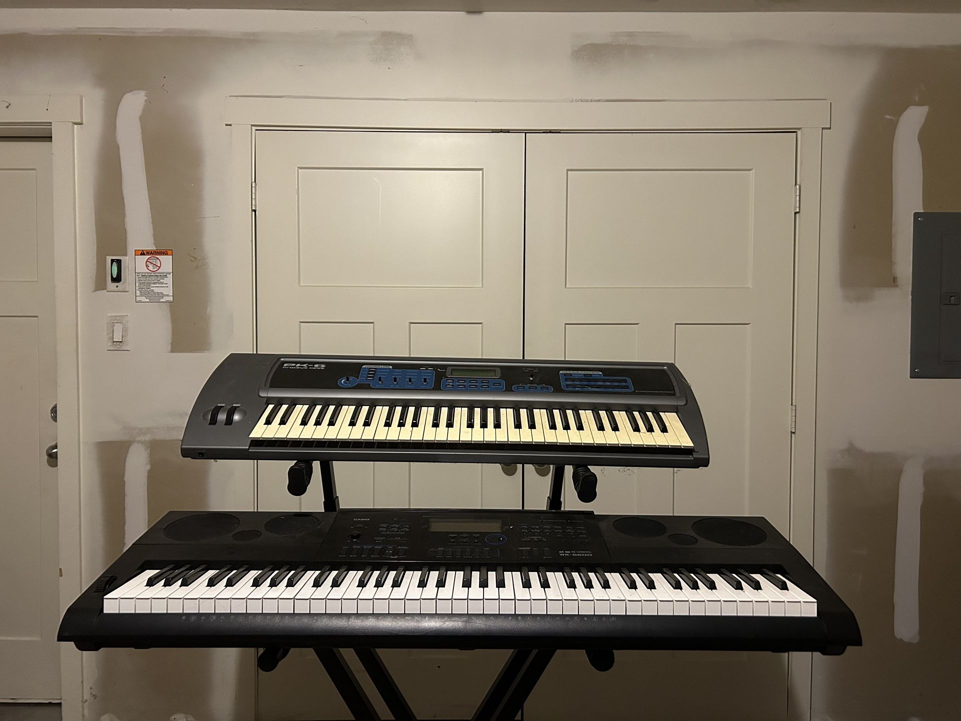 Casio WK-6600 keyboard (no power cord) + Quiklok double stand. Both used, good condition, everything functions properly. Great setup for home studio or gig use. Pick up only
