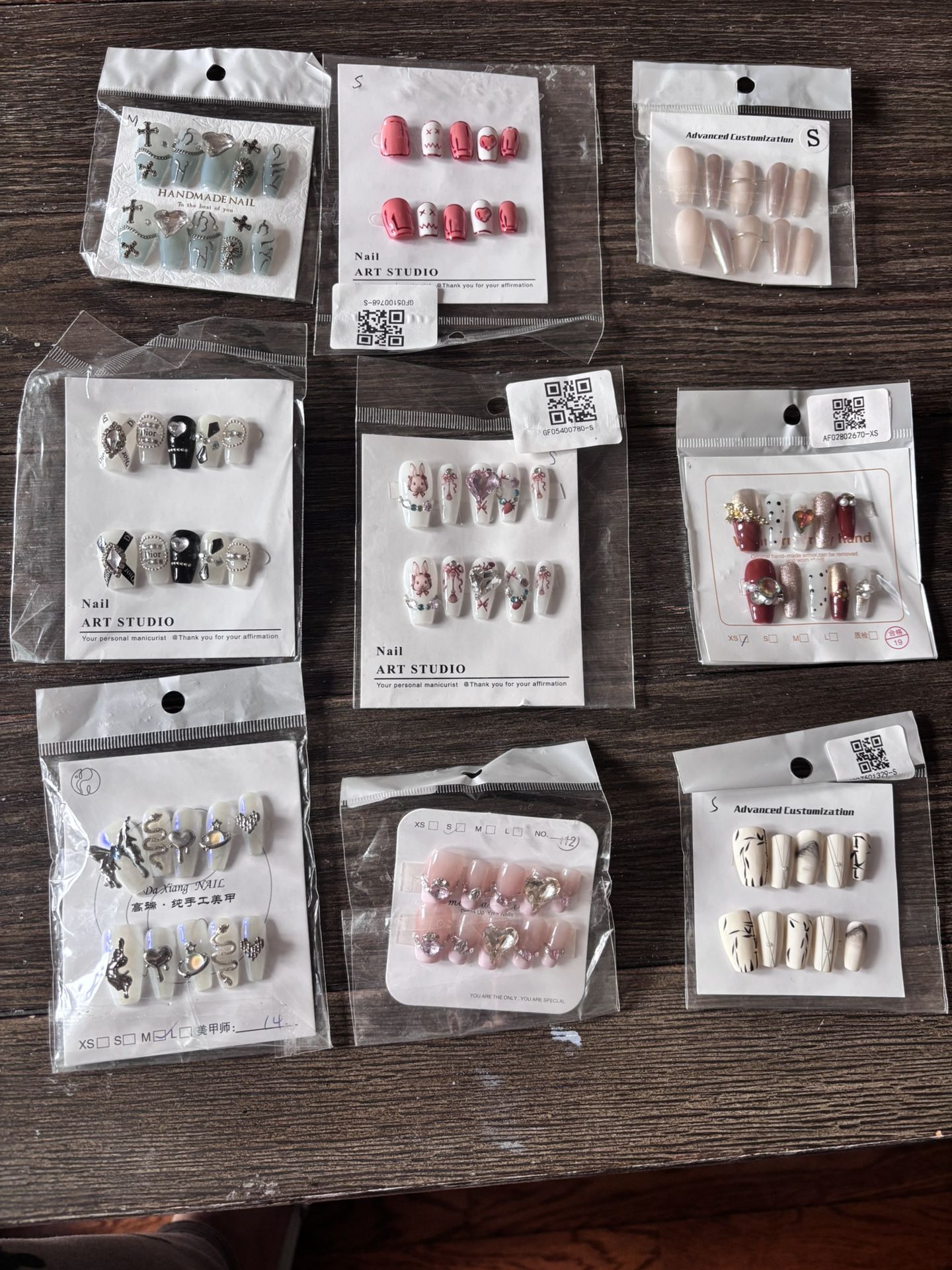 Total Of 9 Different Sizes And Color Combinations Press On Nails Without Glue