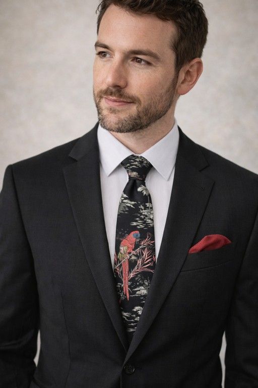 Stunning vintage tie by Brittania. Black with colorful Macaw exotic birds. In excellent, like new condition. 100% polyester.