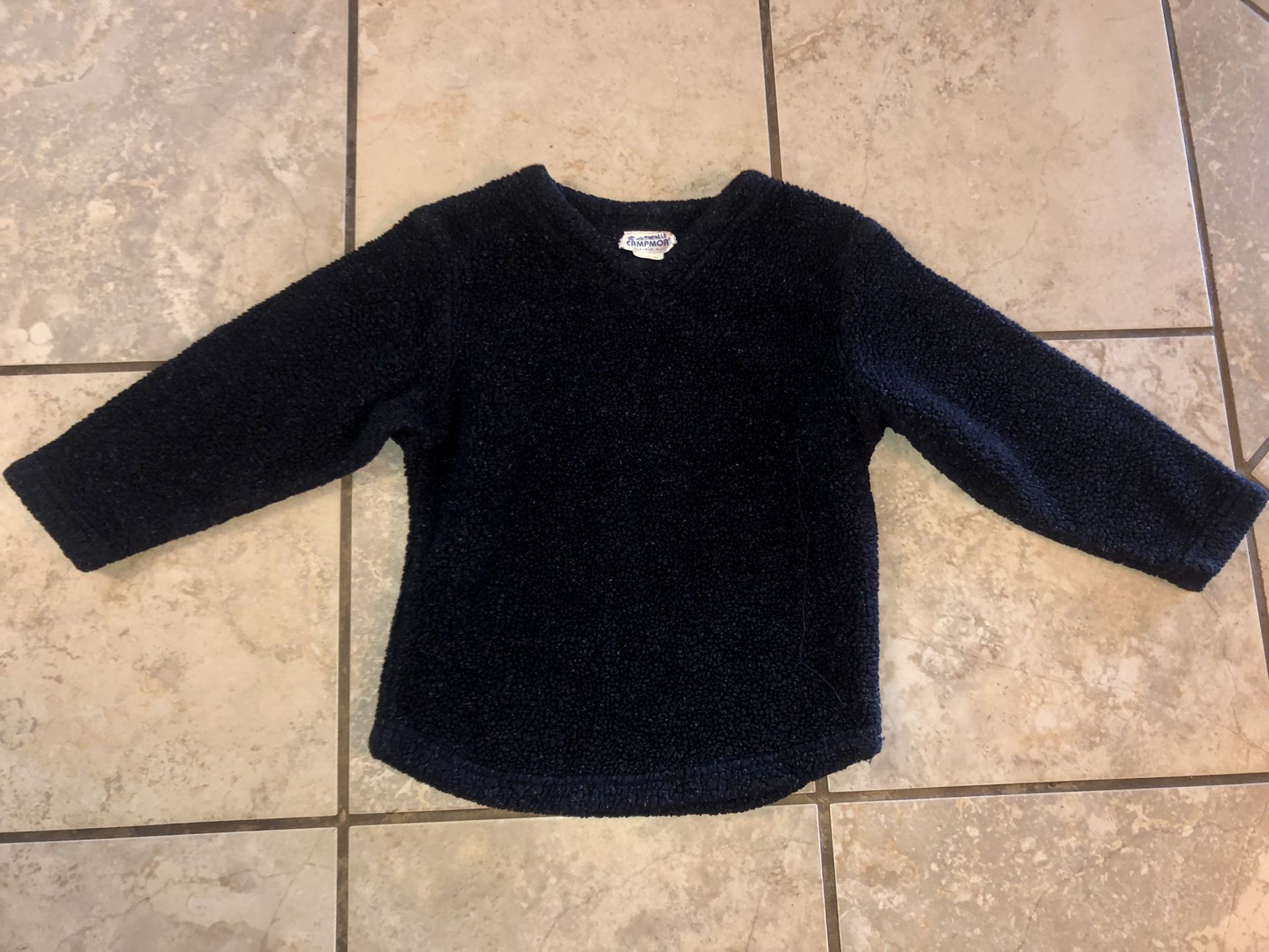 Very Warm and Fast Drying Fleece Pullover Sweater for Kids. Size 5/6. 65% Acrylic and 35% Polyester. Bought it for my son but he never wore it. Great for wearing to the snow and mountains.