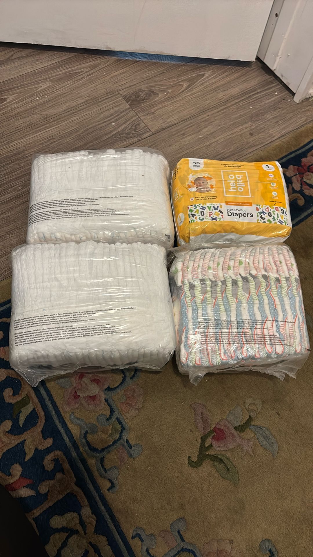 Size 1 diapers and 2T pull ups.