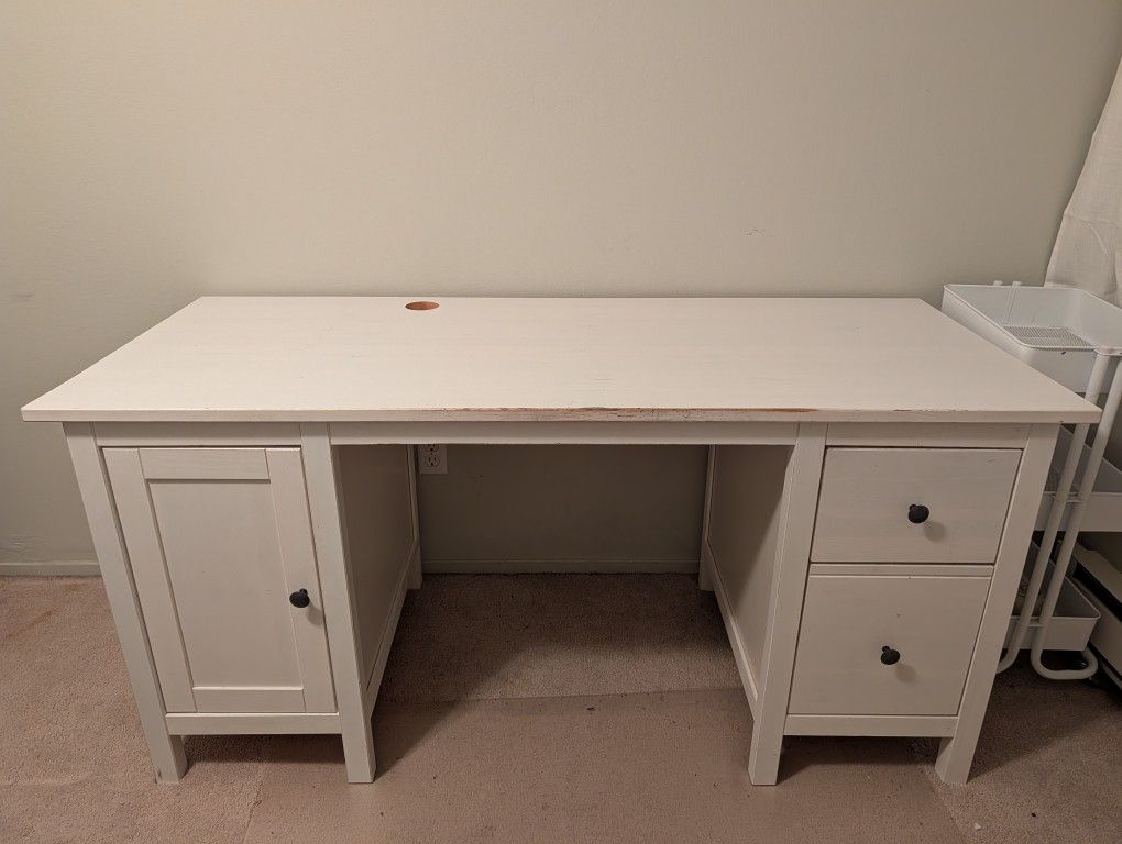 IKEA HEMNES Desk, white, 61x25 5/8 " used, fair conditioning, everything works , see pictures