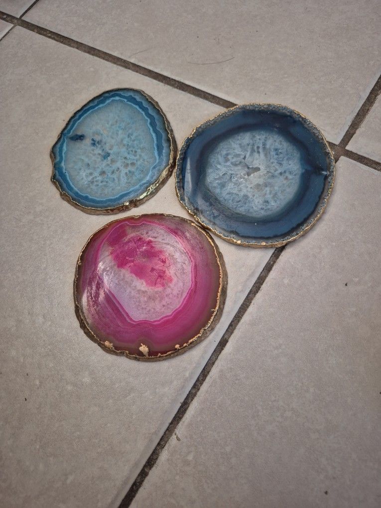 Natural Agate Coasters With Gold Colored Edges