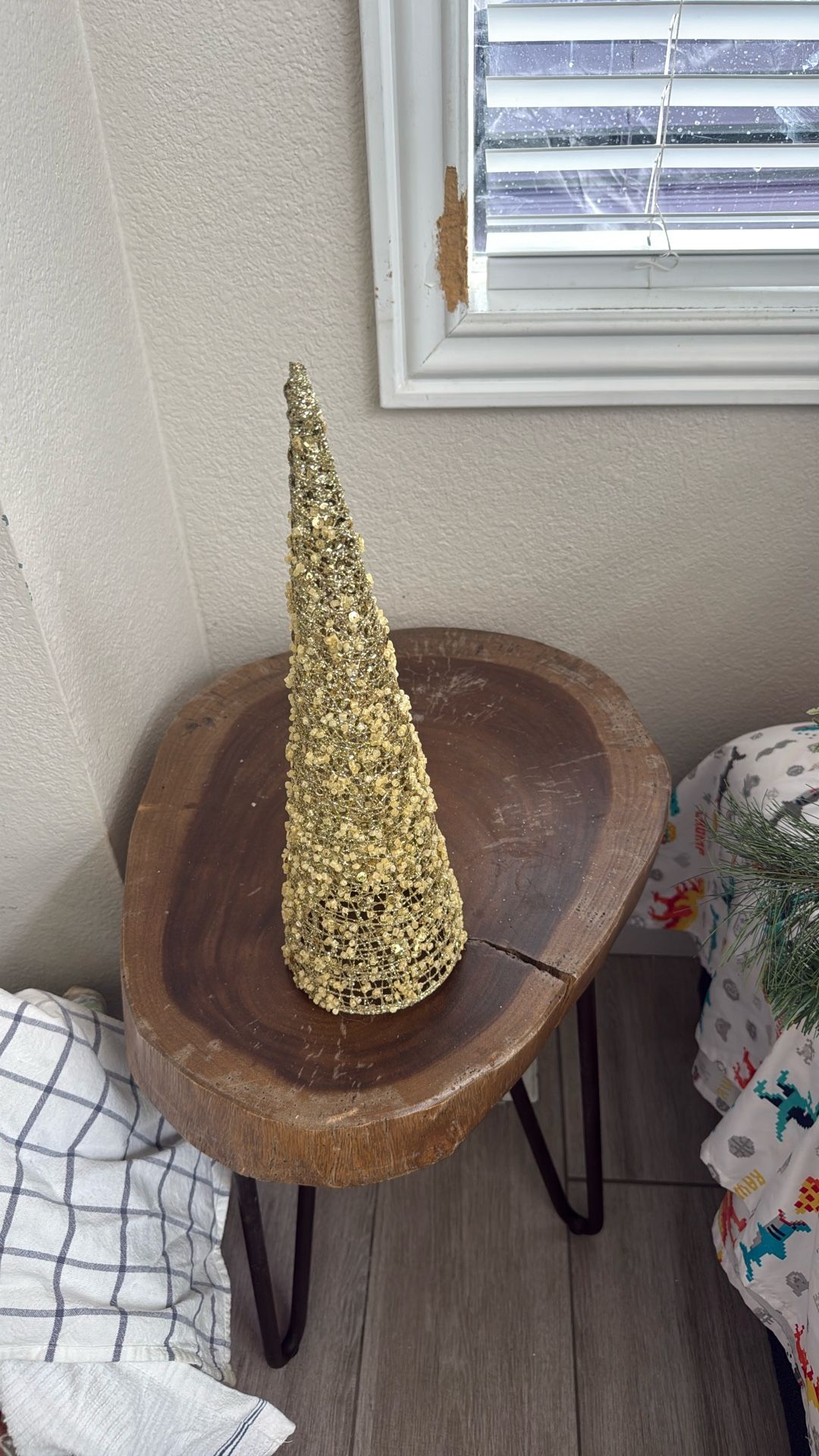 Sequin cone tree. Gold color good condition asking 4 dollars for it