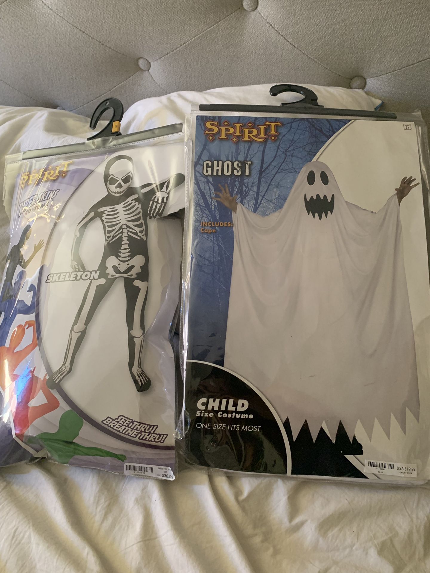 Great condition only used last year..skeleton size small 20$ Ghost one size fits all 10$ ..firm