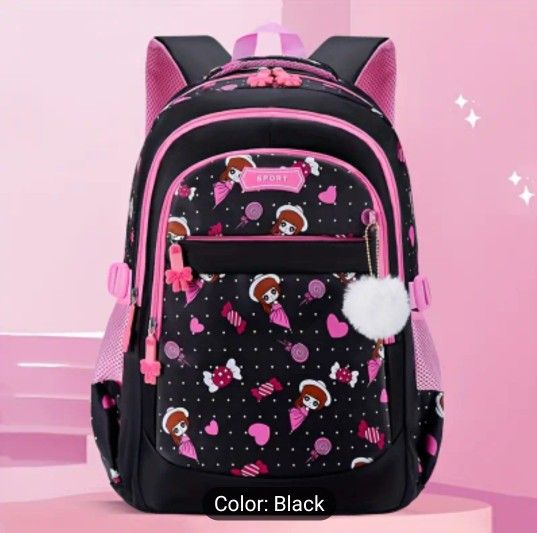 Cuty Cartoon Girl Print Knapsack With Adjustable Strap And Zipper Closure, Casual Simple Large Capacity Backpack For Outdoors And Everyday Use