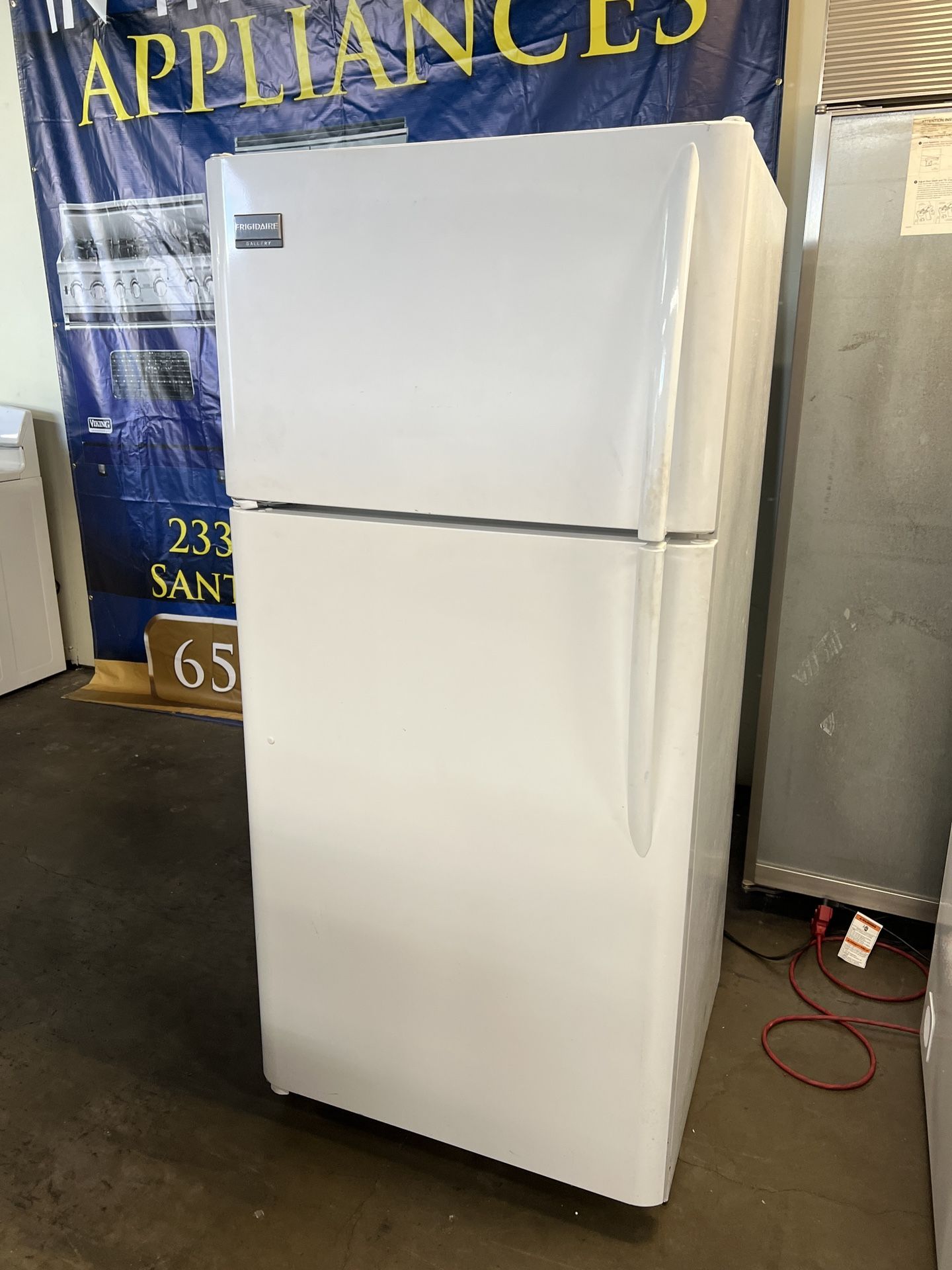 FRIGIDAIRE APARTMENT SIZE TOP FREEZER REFRIGERATOR 18 CU FT IN GLOSS WHITE WARRANTY INCLUDED 90 DAYS DELIVERY, HAUL AWAY AND IN HOME INSTALLATION IS AVAILABLE AVAILABLE FOR IN PERSON VIEWING FINANCING WITH SNAP FINANCE