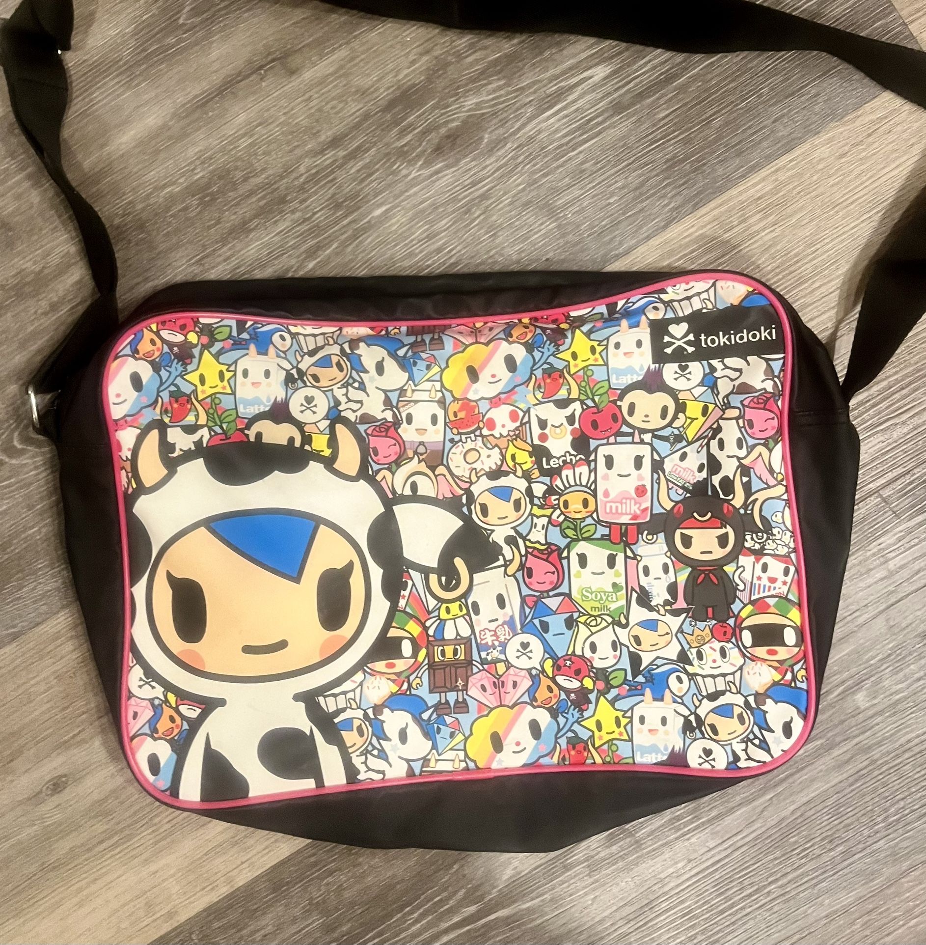 Like New Condition! This hipster-friendly messenger bag is the coolest! Perfect for fitting in books and notebooks, a laptop, and more, it’s bright, with a wipe-clean surface, and vividly decorated with all your favorite tokidoki characters. The shoulder straps are adjustable for comfort, and an inside pockets keeps your things organized.