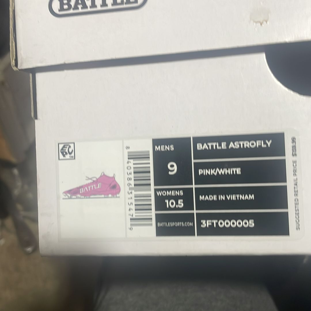 Battle pink football cleats in great condition. Barely used and still have great grip on the bottom. Very comfortable and come with the original box. Size 9 in men’s / 10.5 in women’s. Asking $80 OBO. Message me if interested.