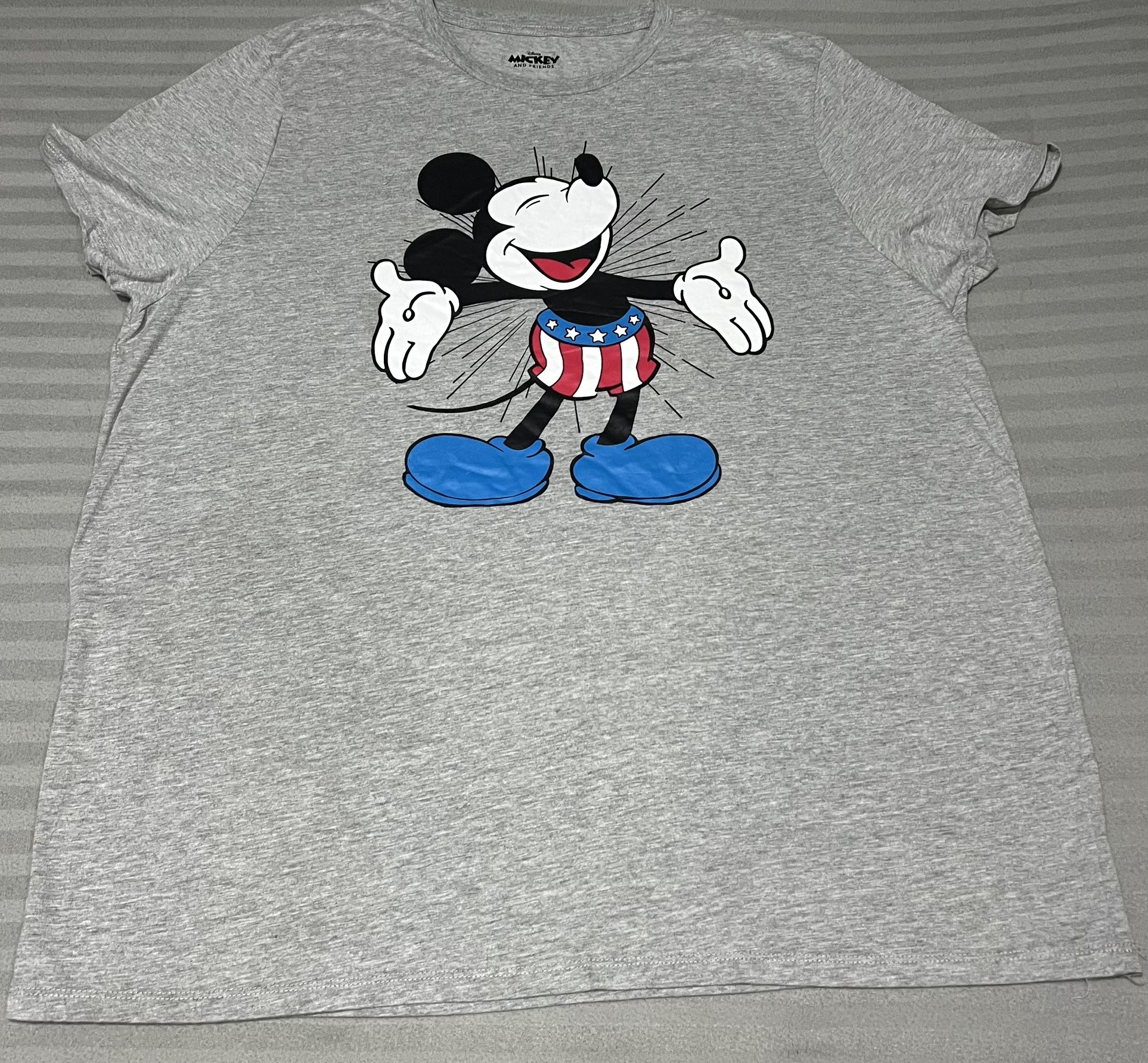 Disney Mickey Mouse Men’s 2XL Shirt Gray Graphic Patriotic Stars & Stripes