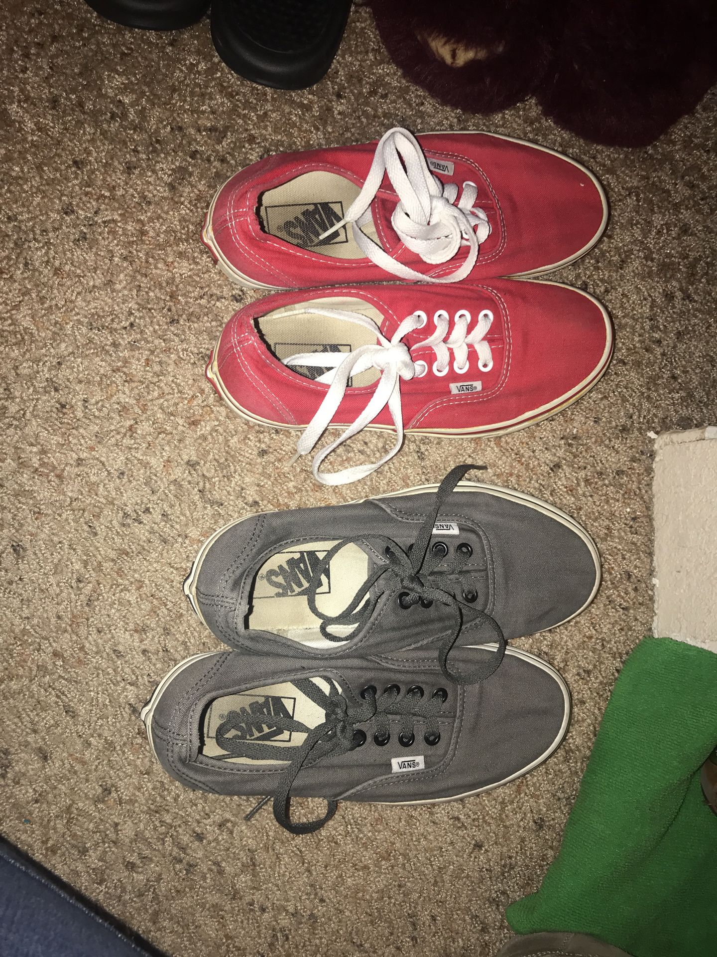 Red size 7 1/2 WOMENS, men’s size 6 Grey size 7 WOMENS, men’s size 5.5 Take both for $25