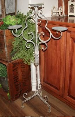 ⭐️ $25.00 FIRM ⭐️ PORCH PICK UP ONLY in West Edmond/N OKC ⭐️ FCFS - NO HOLDS without PAYMENT in FULL via VENMO or Cash App ⭐️ Venmo, Cash App or CASH at pick up LARGE ornate 38.5" tall x 20" wide x 11" deep through legs metal and iron floor height candleabra candle holder accommodating 3 pillar candles. Pretty distressed gray, off white and pops of rust patina with ornate scrolled details and a weathered stone texture for shabby, vintage charm! Perfect for Shabby, French Country or farmhouse cottage decor!