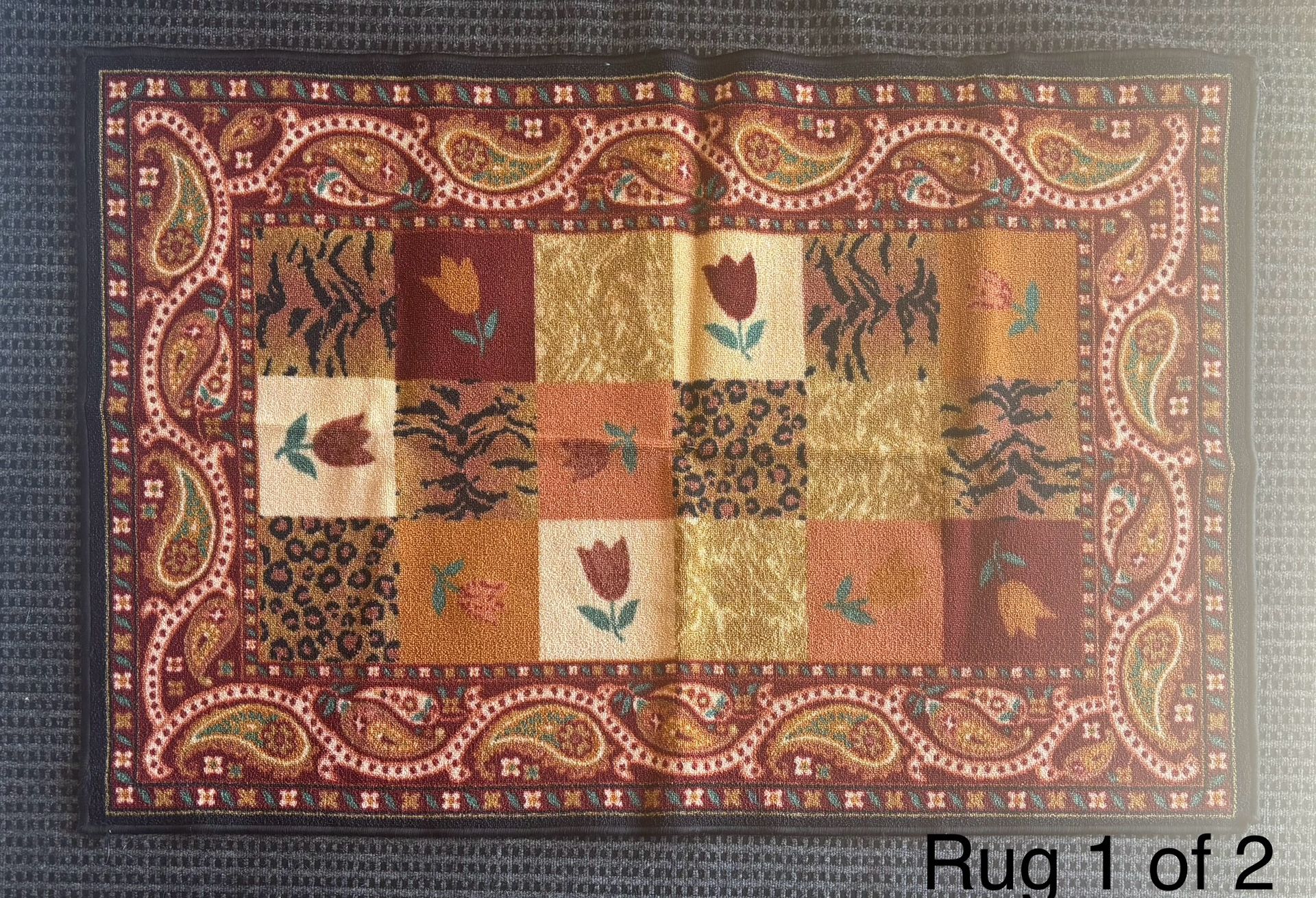 Brand New Front Room Rugs! There are two identical rugs with pictures of the front and back. There’s minor yellowing in the creases from being stored. Very minor cracks on the back of the first rug but still in great condition! Both rugs are 58 1/2 inches by 39 inches. Perfect for dorms, bedrooms or even living rooms! Open to any and all offers, message me with any questions!