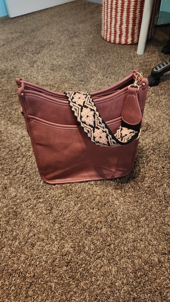 Mauve convertible crossbody shoulder bag. Brand new. Never used. 12 inches high. 11 inches wide, 3 inches deep.