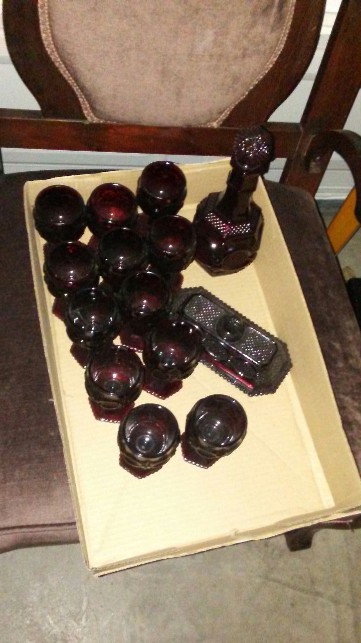 Red ruby glasses antique with the butter dish holder