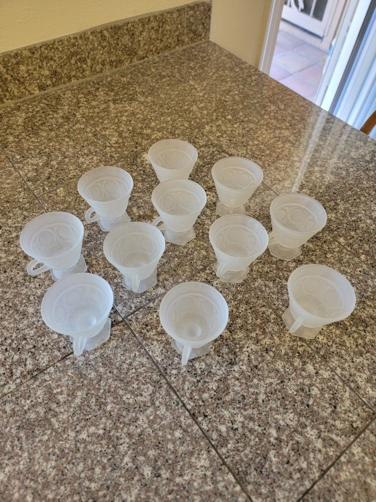 Set of 11 frosted crystal punch glasses, in great condition with no chips or damage. 11 total, they measure 3.5" diameter and 3.25" tall. Great set to complete any MCM collection or punch bowl set!