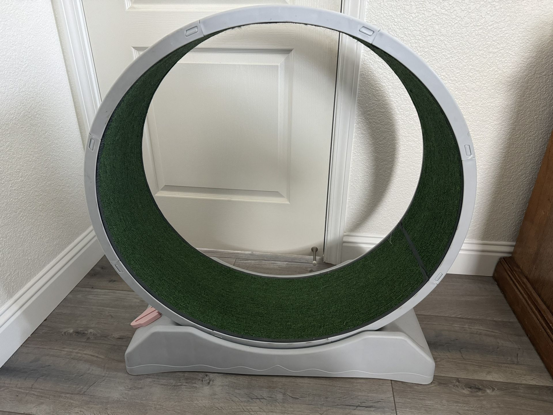 Cat exercise wheel treadmill in good condition. 32” diameter. Barely used, cat didnt like it