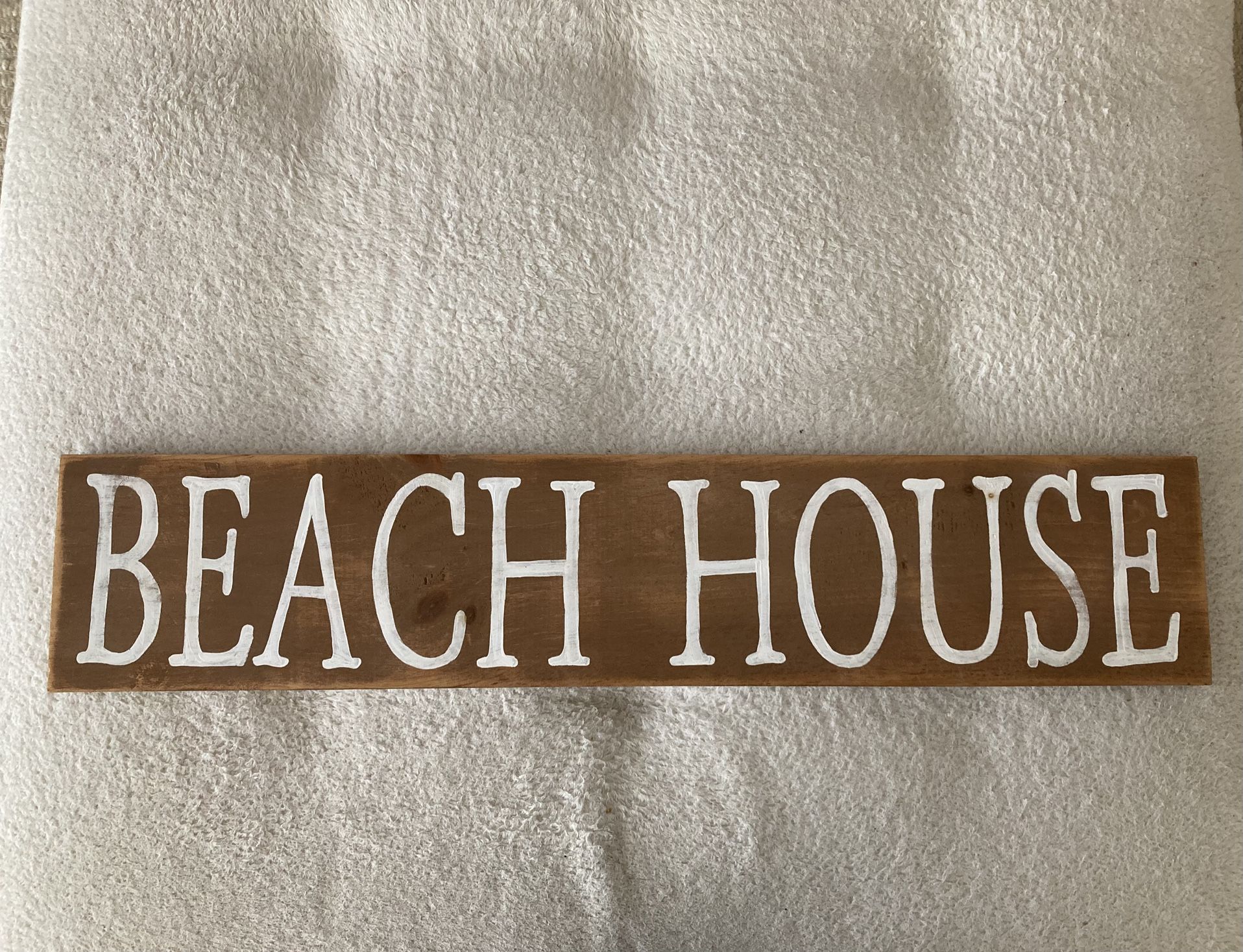 Beach House Wood Sign, 36” x 7.25” - New, has two saw tooth hangers on back